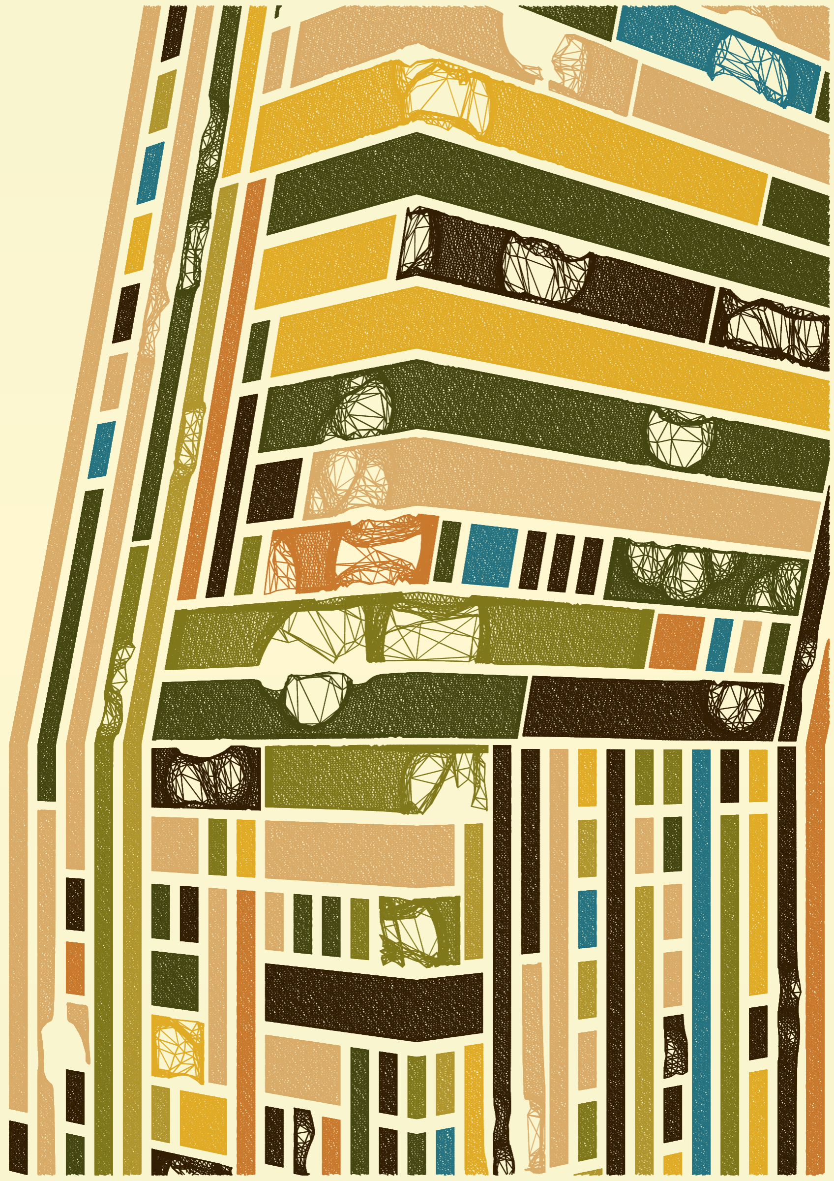 "Edifice" is a series of 976 massive, deteriorating structures built on strange terrain. It is an exploration of buildings being conceptualized, constructed, and eroded away under a wide variety of conditions. Edifice's outputs run the gamut between minimal and maximal, with some showing few large, static blocks of color, and others many small, highly textured and warped shapes. Each image is progressively constructed in front of the viewer's eyes. It is a system full of surprises that I'm excited to share with the world.