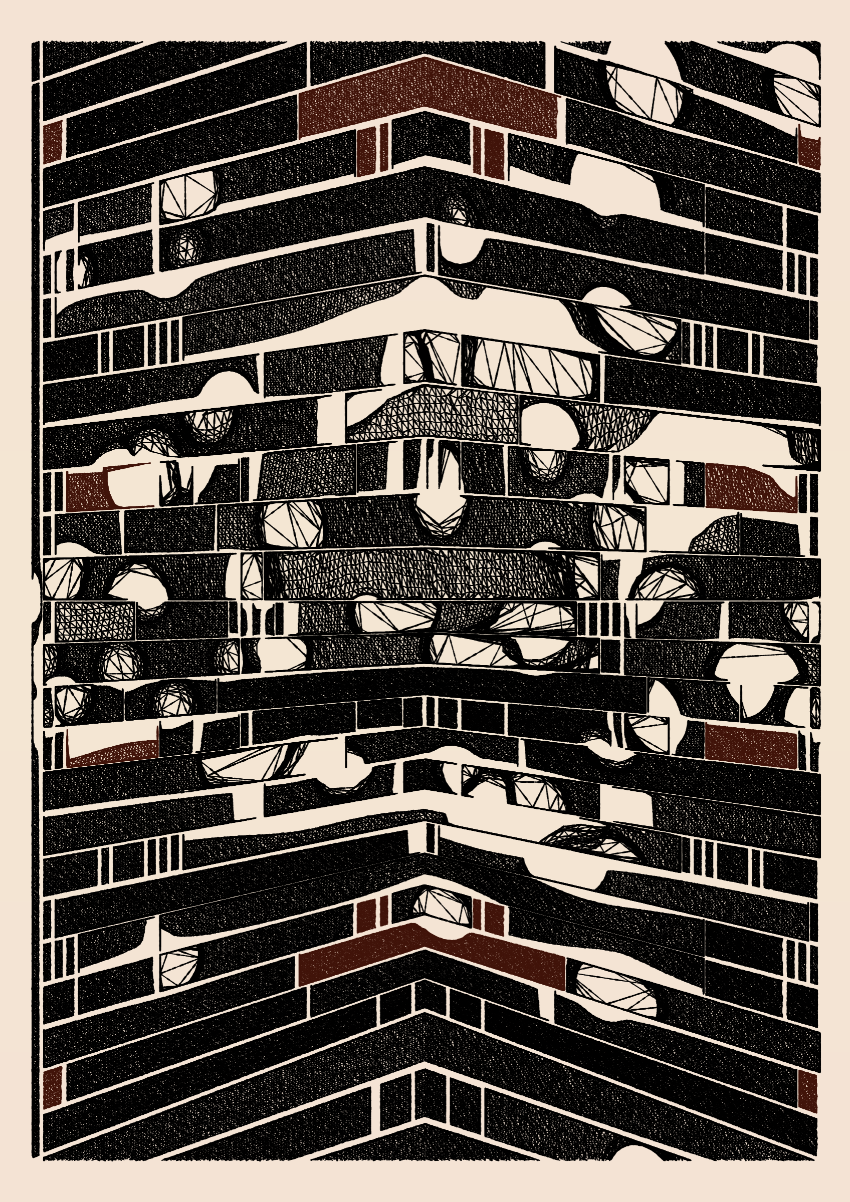 "Edifice" is a series of 976 massive, deteriorating structures built on strange terrain. It is an exploration of buildings being conceptualized, constructed, and eroded away under a wide variety of conditions. Edifice's outputs run the gamut between minimal and maximal, with some showing few large, static blocks of color, and others many small, highly textured and warped shapes. Each image is progressively constructed in front of the viewer's eyes. It is a system full of surprises that I'm excited to share with the world.