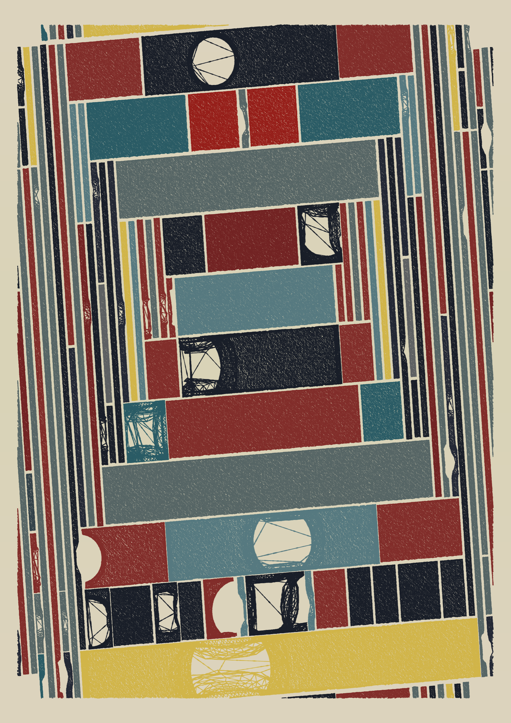 "Edifice" is a series of 976 massive, deteriorating structures built on strange terrain. It is an exploration of buildings being conceptualized, constructed, and eroded away under a wide variety of conditions. Edifice's outputs run the gamut between minimal and maximal, with some showing few large, static blocks of color, and others many small, highly textured and warped shapes. Each image is progressively constructed in front of the viewer's eyes. It is a system full of surprises that I'm excited to share with the world.
