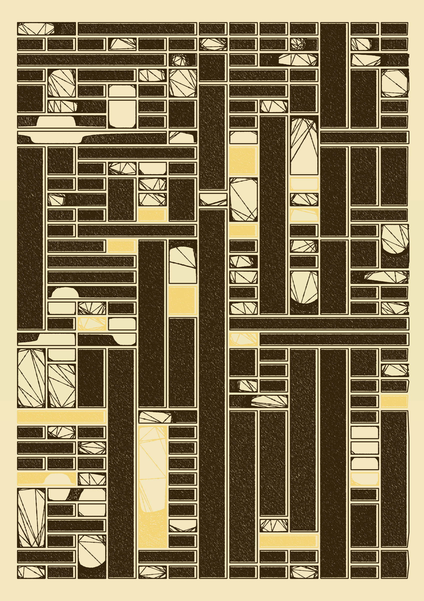 "Edifice" is a series of 976 massive, deteriorating structures built on strange terrain. It is an exploration of buildings being conceptualized, constructed, and eroded away under a wide variety of conditions. Edifice's outputs run the gamut between minimal and maximal, with some showing few large, static blocks of color, and others many small, highly textured and warped shapes. Each image is progressively constructed in front of the viewer's eyes. It is a system full of surprises that I'm excited to share with the world.