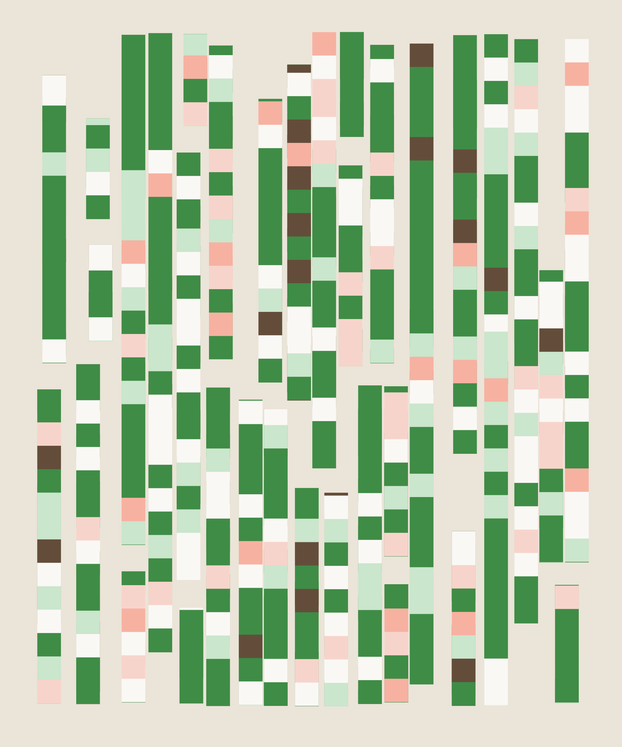 Fidenza is by far my most versatile algorithm to date. Although the program stays focused on structured curves and blocks, the varieties of scale, organization, texture, and color usage it can employ create a wide array of generative possibilities.