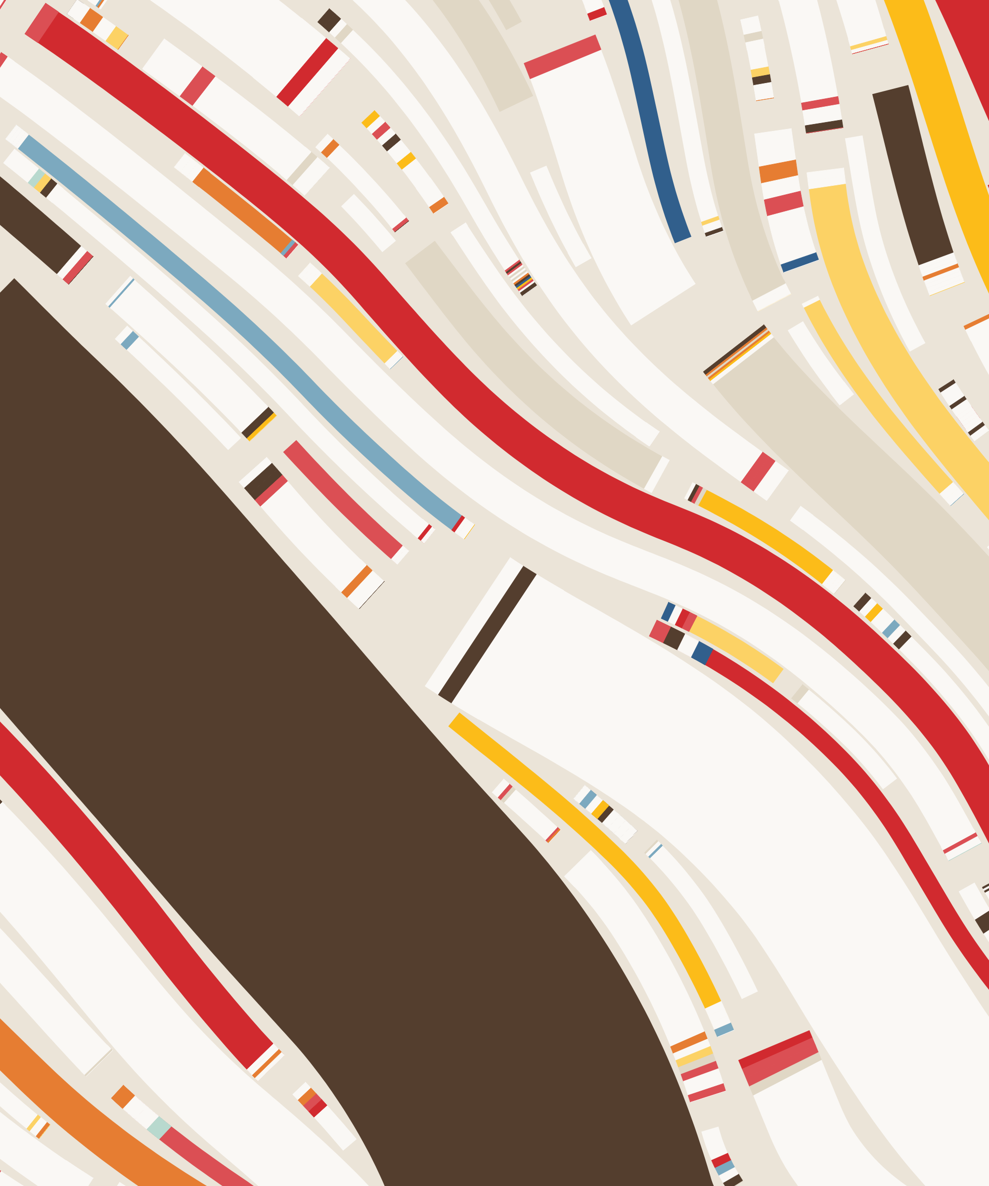 Fidenza is by far my most versatile algorithm to date. Although the program stays focused on structured curves and blocks, the varieties of scale, organization, texture, and color usage it can employ create a wide array of generative possibilities.
