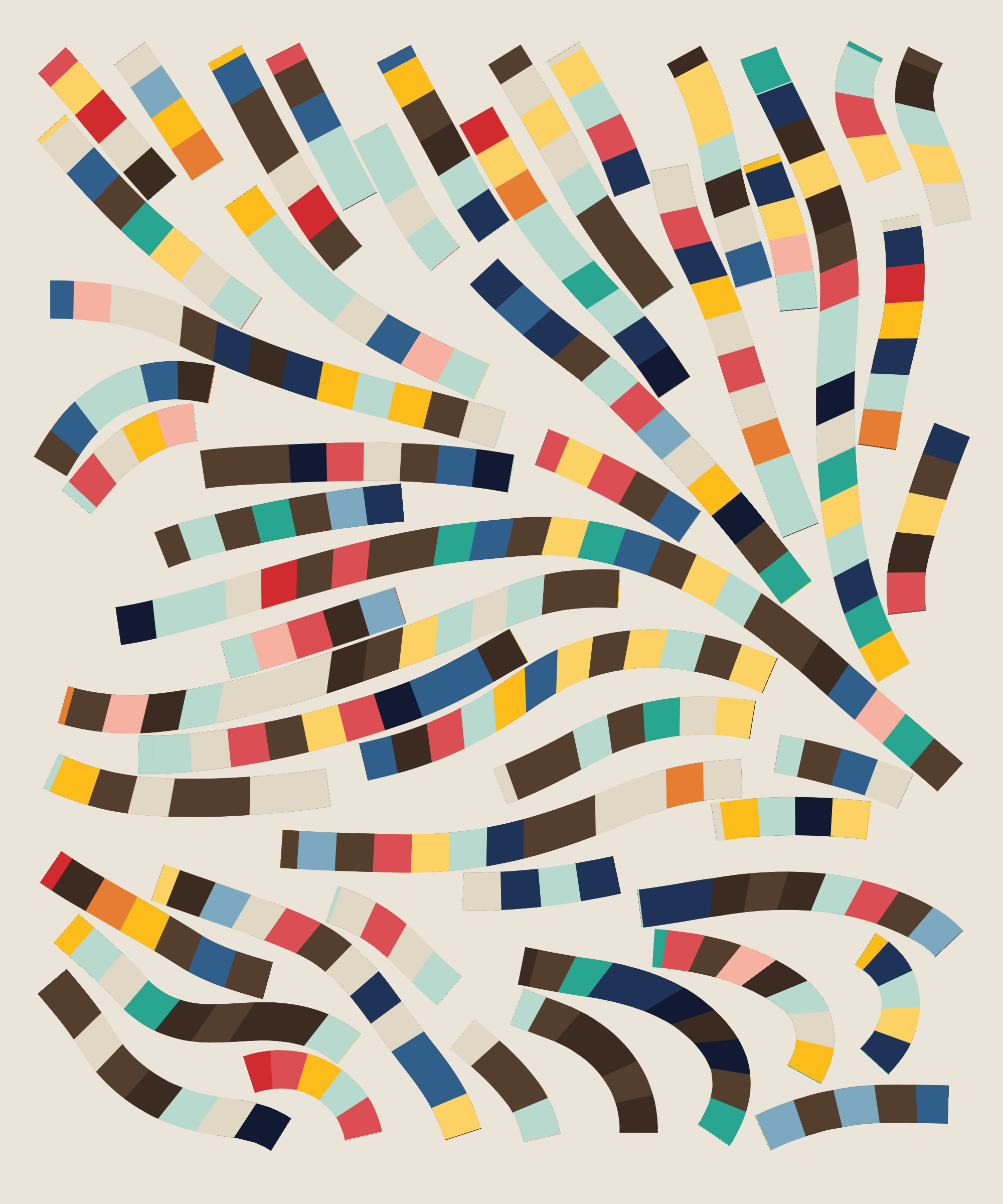 Fidenza is by far my most versatile algorithm to date. Although the program stays focused on structured curves and blocks, the varieties of scale, organization, texture, and color usage it can employ create a wide array of generative possibilities.