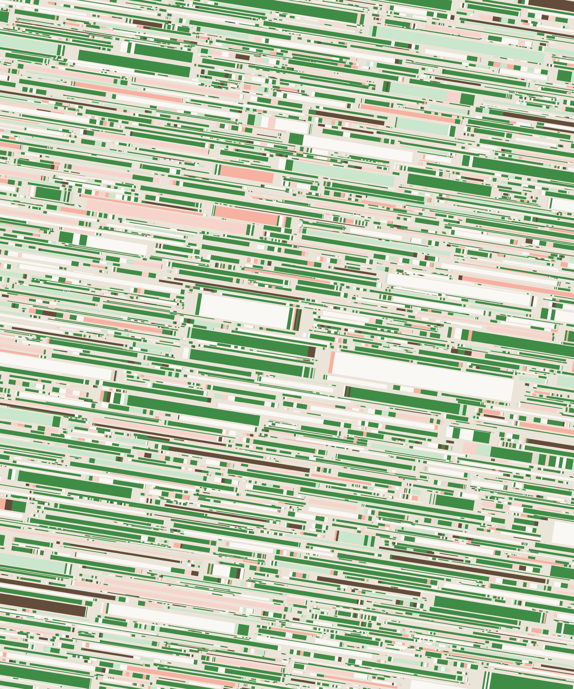 Fidenza is by far my most versatile algorithm to date. Although the program stays focused on structured curves and blocks, the varieties of scale, organization, texture, and color usage it can employ create a wide array of generative possibilities.