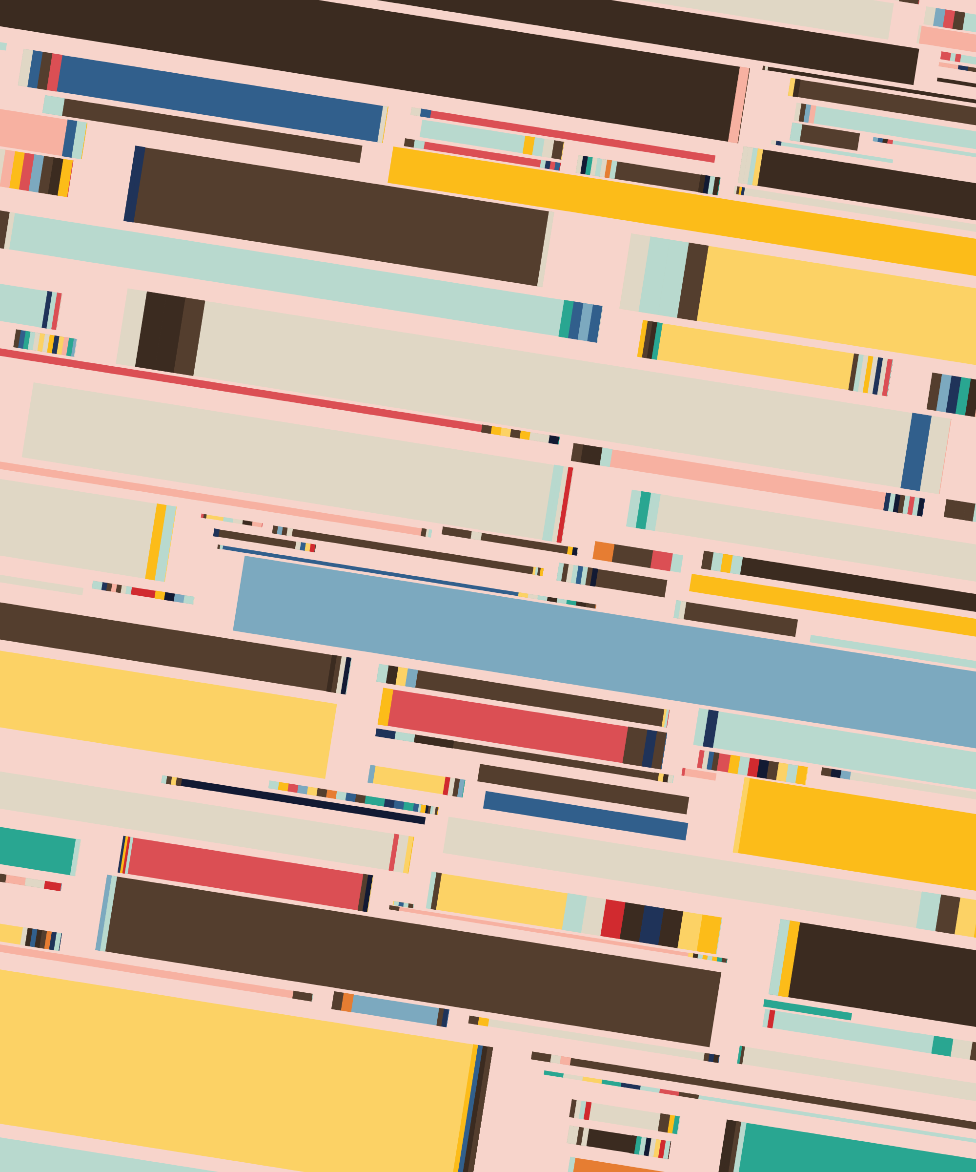 Fidenza is by far my most versatile algorithm to date. Although the program stays focused on structured curves and blocks, the varieties of scale, organization, texture, and color usage it can employ create a wide array of generative possibilities.