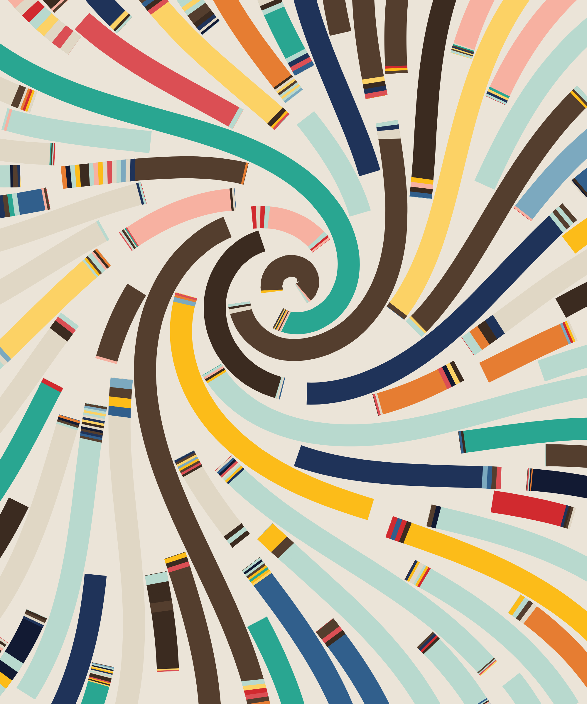 Fidenza is by far my most versatile algorithm to date. Although the program stays focused on structured curves and blocks, the varieties of scale, organization, texture, and color usage it can employ create a wide array of generative possibilities.