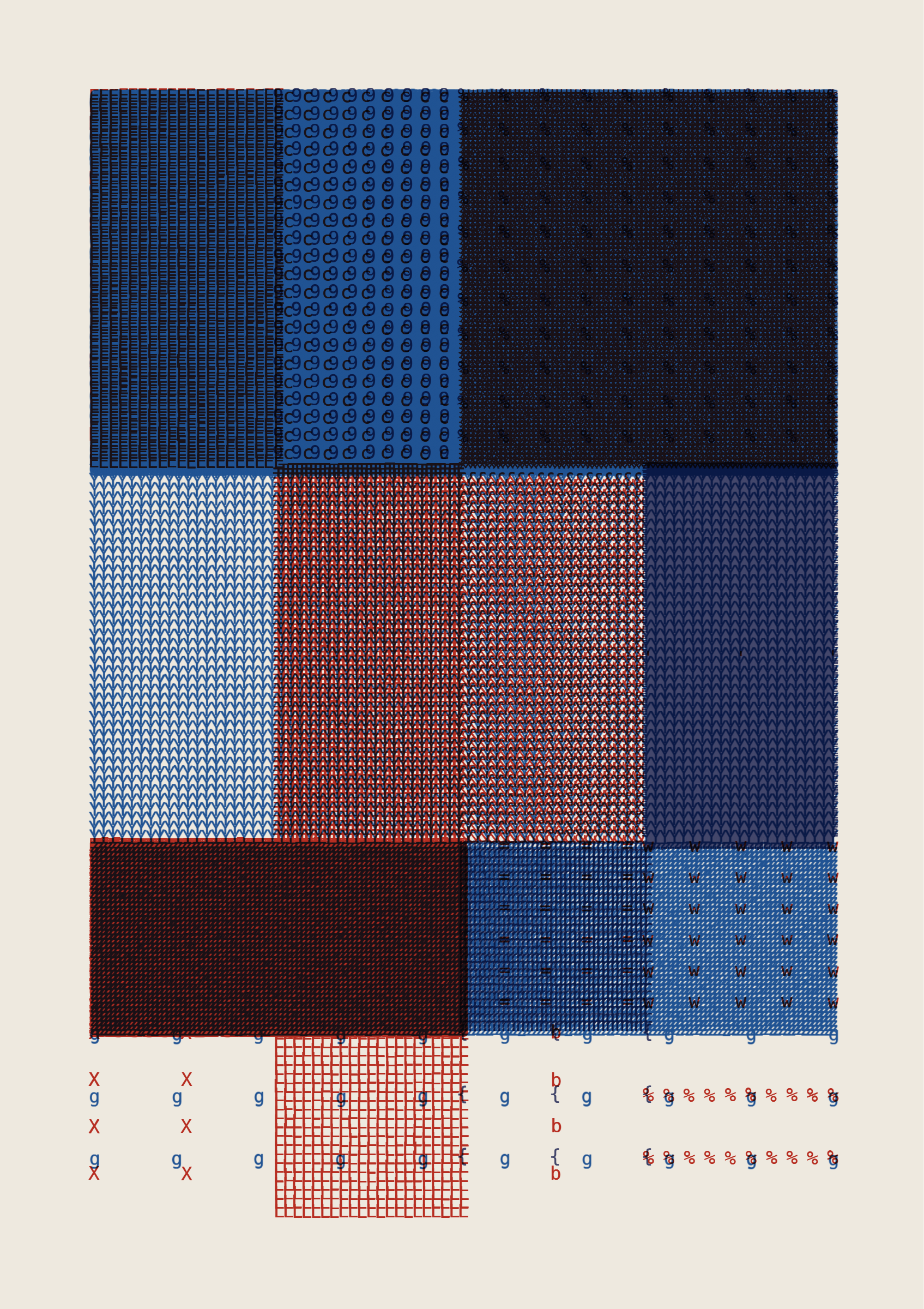 FOLIO is a generative drawing system, inspired by concrete poetry and early computer artwork, that emits an output process for a given input. Each output may be realized digitally, in print, or through another medium. The drawing system, coded in JavaScript, recursively packs bins of data to fill the page, constrained entirely by the use of typographic glyphs and a limited mono-, duo-, or tri-colour palette.