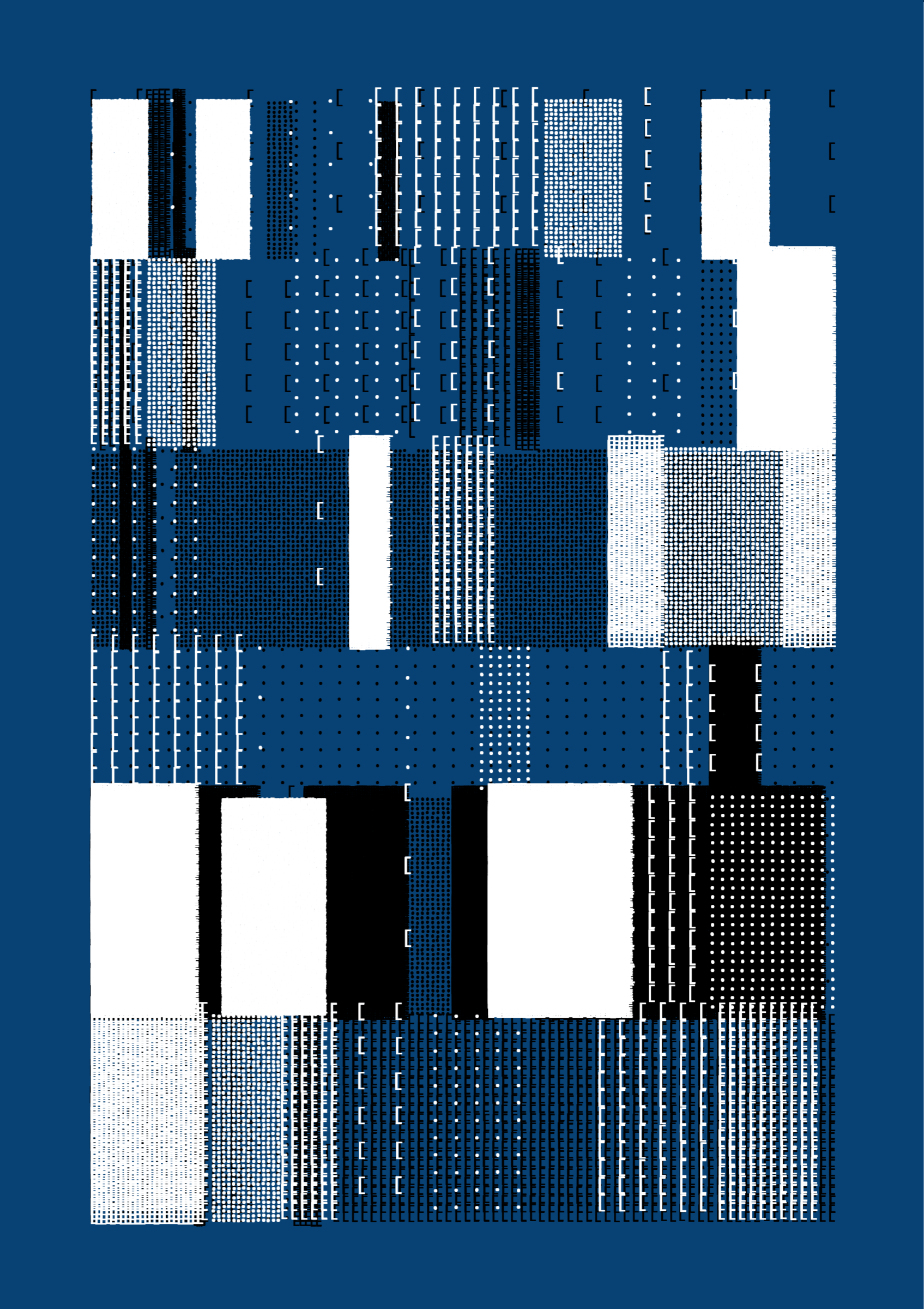 FOLIO is a generative drawing system, inspired by concrete poetry and early computer artwork, that emits an output process for a given input. Each output may be realized digitally, in print, or through another medium. The drawing system, coded in JavaScript, recursively packs bins of data to fill the page, constrained entirely by the use of typographic glyphs and a limited mono-, duo-, or tri-colour palette.
