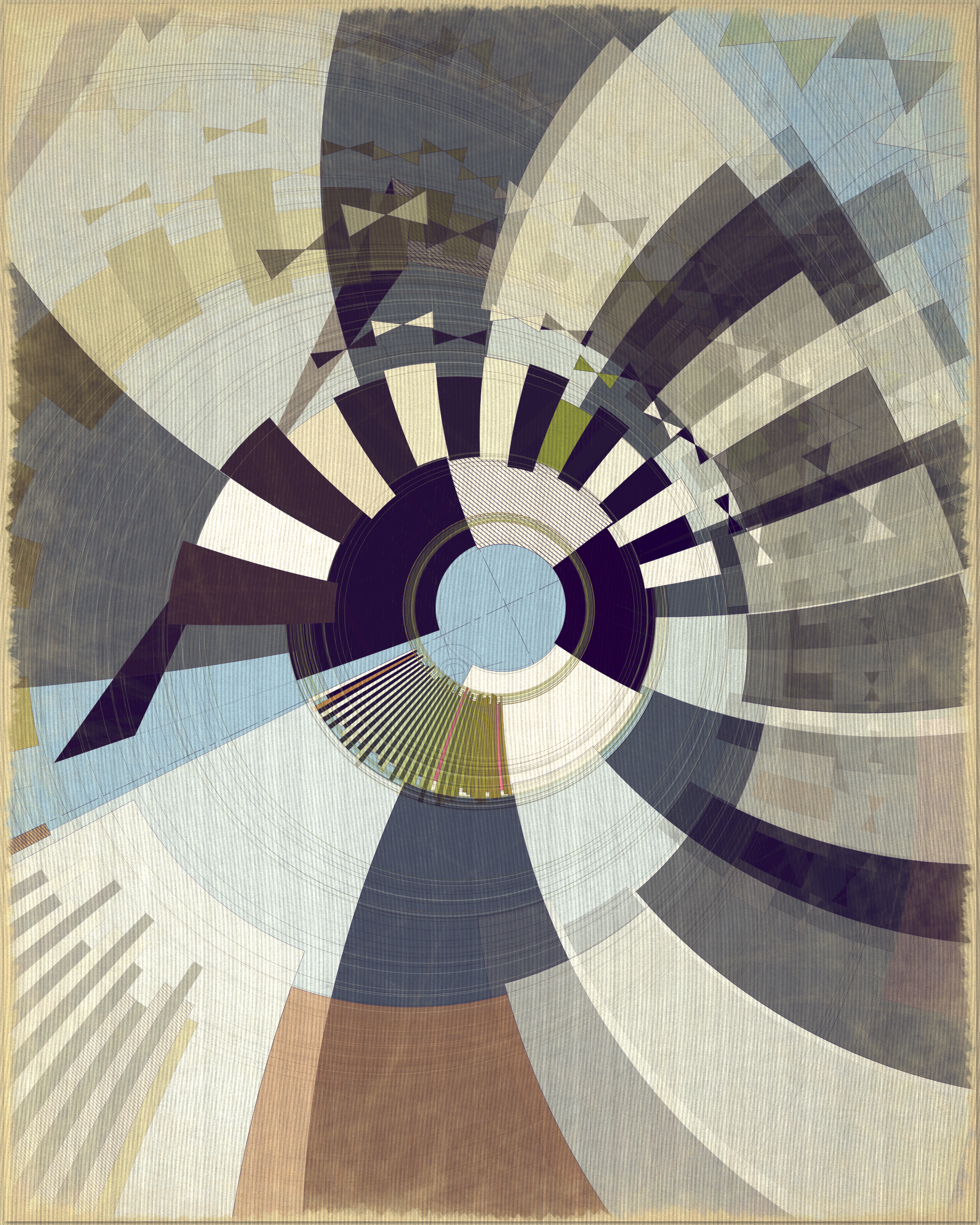 This project is a playful attempt at abstractly capturing the flowing movement of a fountain using precisely drawn elements that evoke a static and considered rendering of a subject that is in constant flux. The visual language is reminiscent of hand-draughted technical drawing, a precise and methodical practice that progresses at a radically different pace to the flowing and capricious movement of water. To increase this tension between dynamic motion and static mechanical process I wanted the surface textures to appear worn and aged like a drawing that has spent its life in the bottom of a mechanics drawer. This process of abrasion and discoloration is occurring on yet another scale of time adding complexity to the references of time passing.