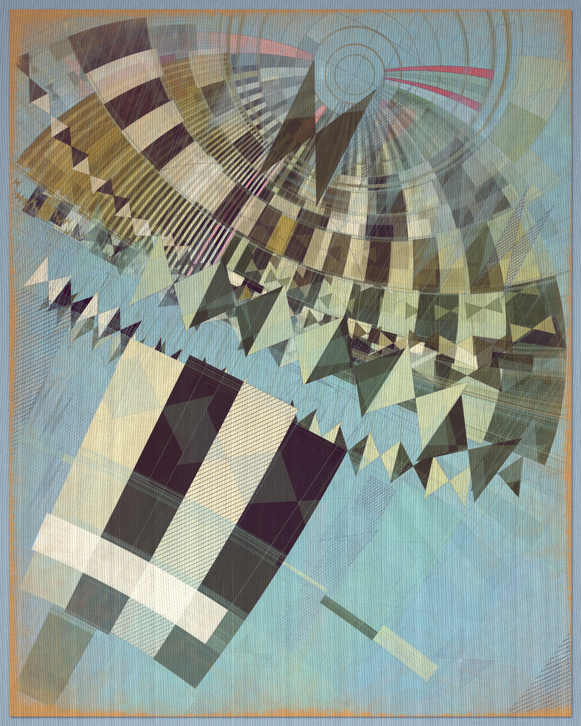 This project is a playful attempt at abstractly capturing the flowing movement of a fountain using precisely drawn elements that evoke a static and considered rendering of a subject that is in constant flux. The visual language is reminiscent of hand-draughted technical drawing, a precise and methodical practice that progresses at a radically different pace to the flowing and capricious movement of water. To increase this tension between dynamic motion and static mechanical process I wanted the surface textures to appear worn and aged like a drawing that has spent its life in the bottom of a mechanics drawer. This process of abrasion and discoloration is occurring on yet another scale of time adding complexity to the references of time passing.