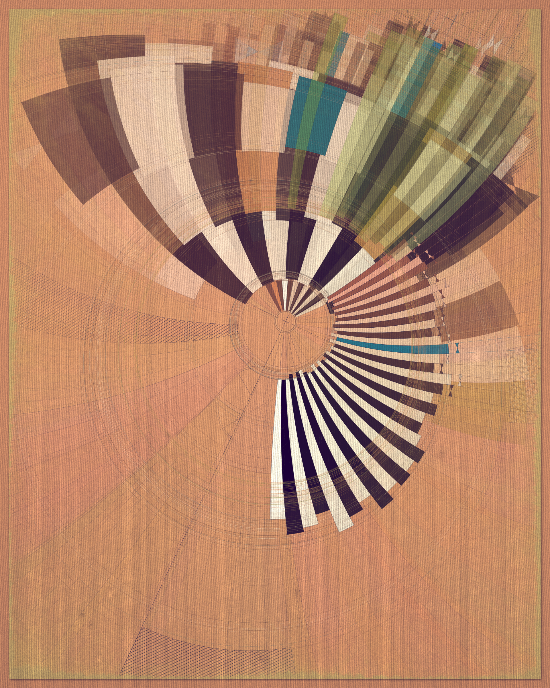Woven into the very fabric of Fontana is a fully generative solution for creating color expression. This means there is no reliance on preset palettes with every output being an entirely unique color articulation of the color story I want the project to reveal as a whole. Far from being random I attempted to create an approach which produces colors that evoke early 20th Century art and design media. With this intention I wanted outputs to look like they could be working drawing artifacts from this period of time.