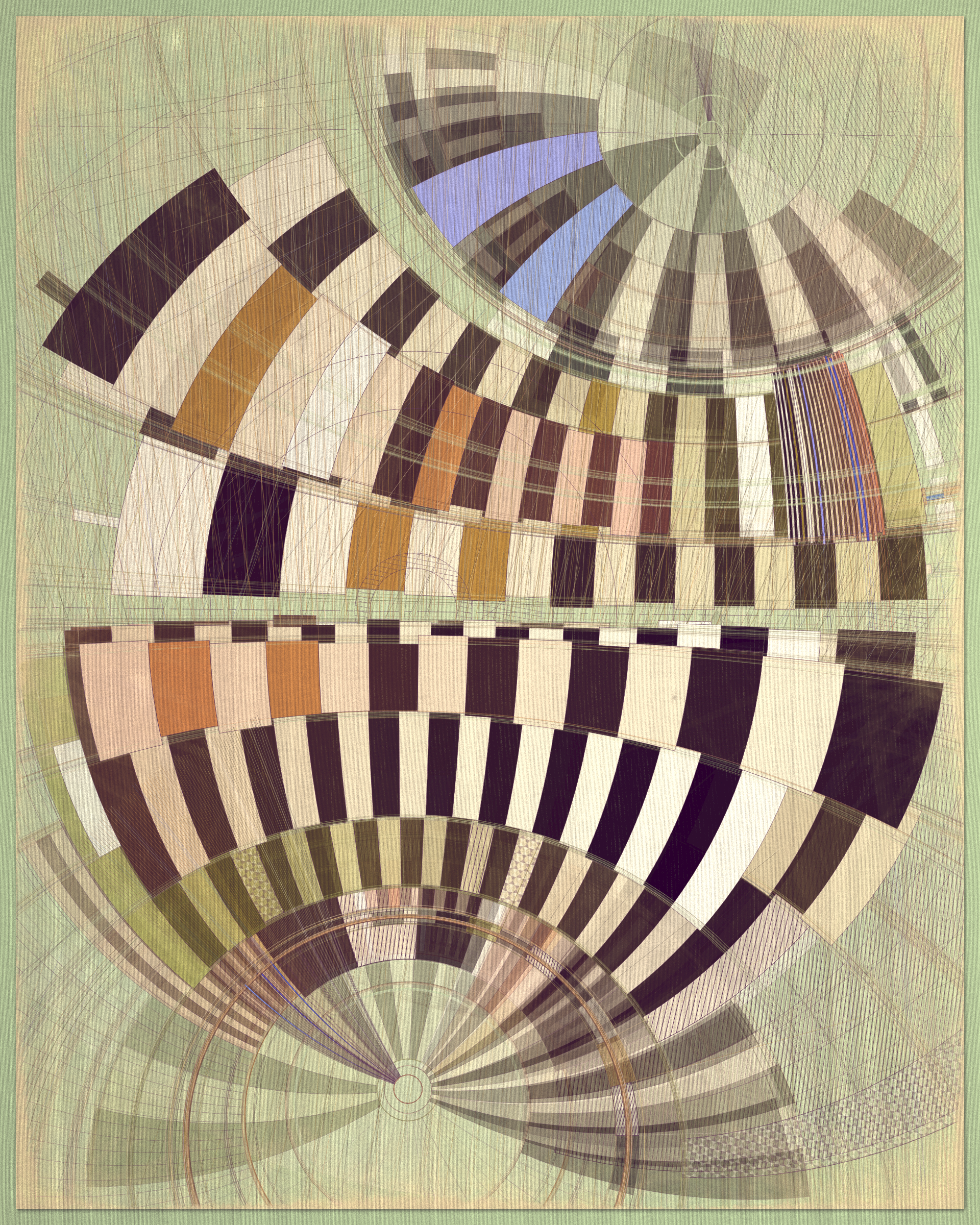 Woven into the very fabric of Fontana is a fully generative solution for creating color expression. This means there is no reliance on preset palettes with every output being an entirely unique color articulation of the color story I want the project to reveal as a whole. Far from being random I attempted to create an approach which produces colors that evoke early 20th Century art and design media. With this intention I wanted outputs to look like they could be working drawing artifacts from this period of time.