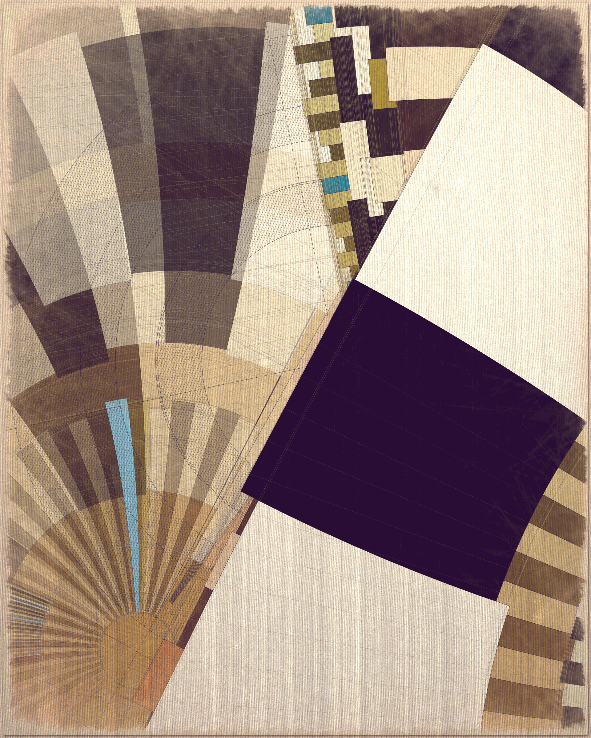 Woven into the very fabric of Fontana is a fully generative solution for creating color expression. This means there is no reliance on preset palettes with every output being an entirely unique color articulation of the color story I want the project to reveal as a whole. Far from being random I attempted to create an approach which produces colors that evoke early 20th Century art and design media. With this intention I wanted outputs to look like they could be working drawing artifacts from this period of time.