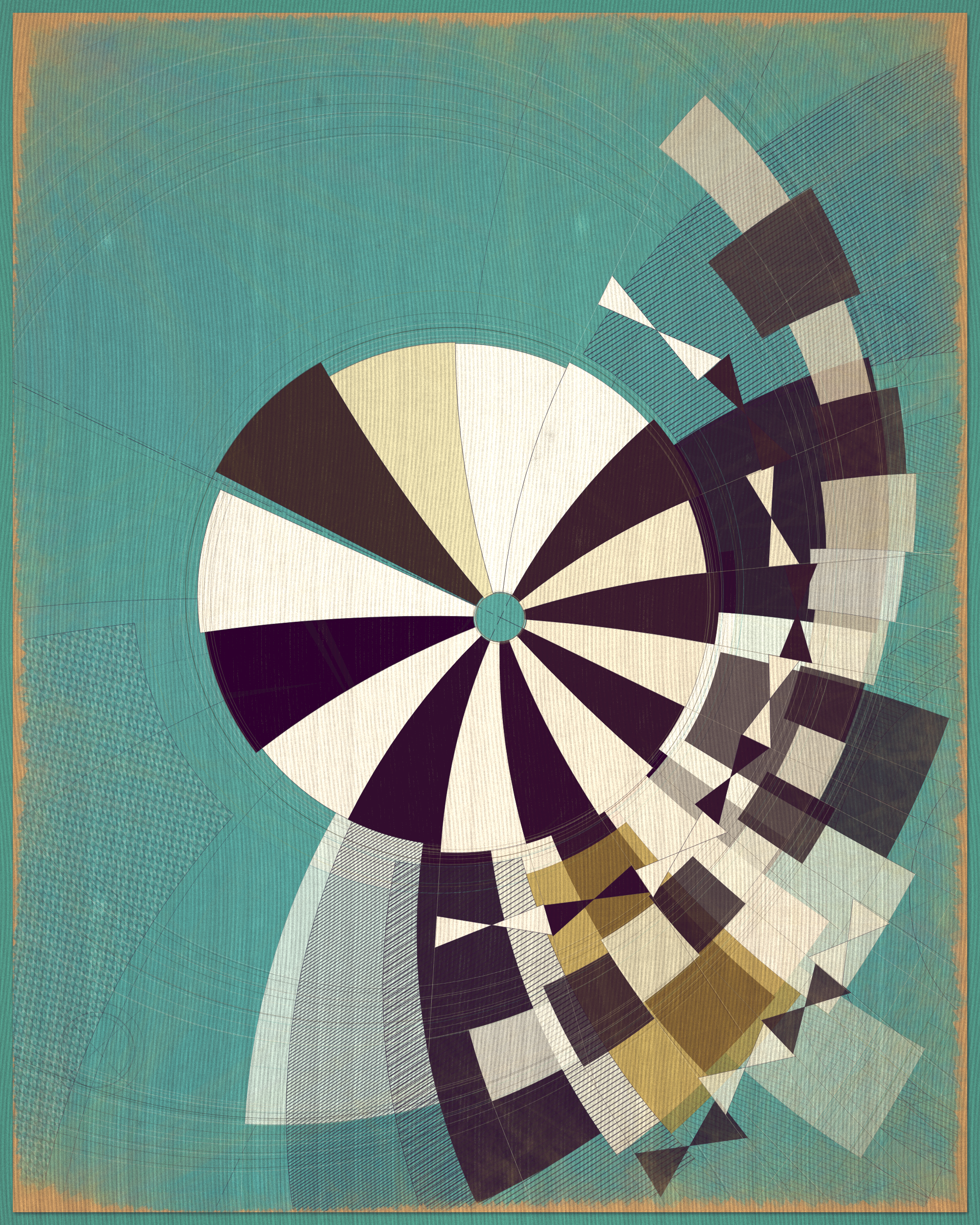 This project is a playful attempt at abstractly capturing the flowing movement of a fountain using precisely drawn elements that evoke a static and considered rendering of a subject that is in constant flux. The visual language is reminiscent of hand-draughted technical drawing, a precise and methodical practice that progresses at a radically different pace to the flowing and capricious movement of water. To increase this tension between dynamic motion and static mechanical process I wanted the surface textures to appear worn and aged like a drawing that has spent its life in the bottom of a mechanics drawer. This process of abrasion and discoloration is occurring on yet another scale of time adding complexity to the references of time passing.