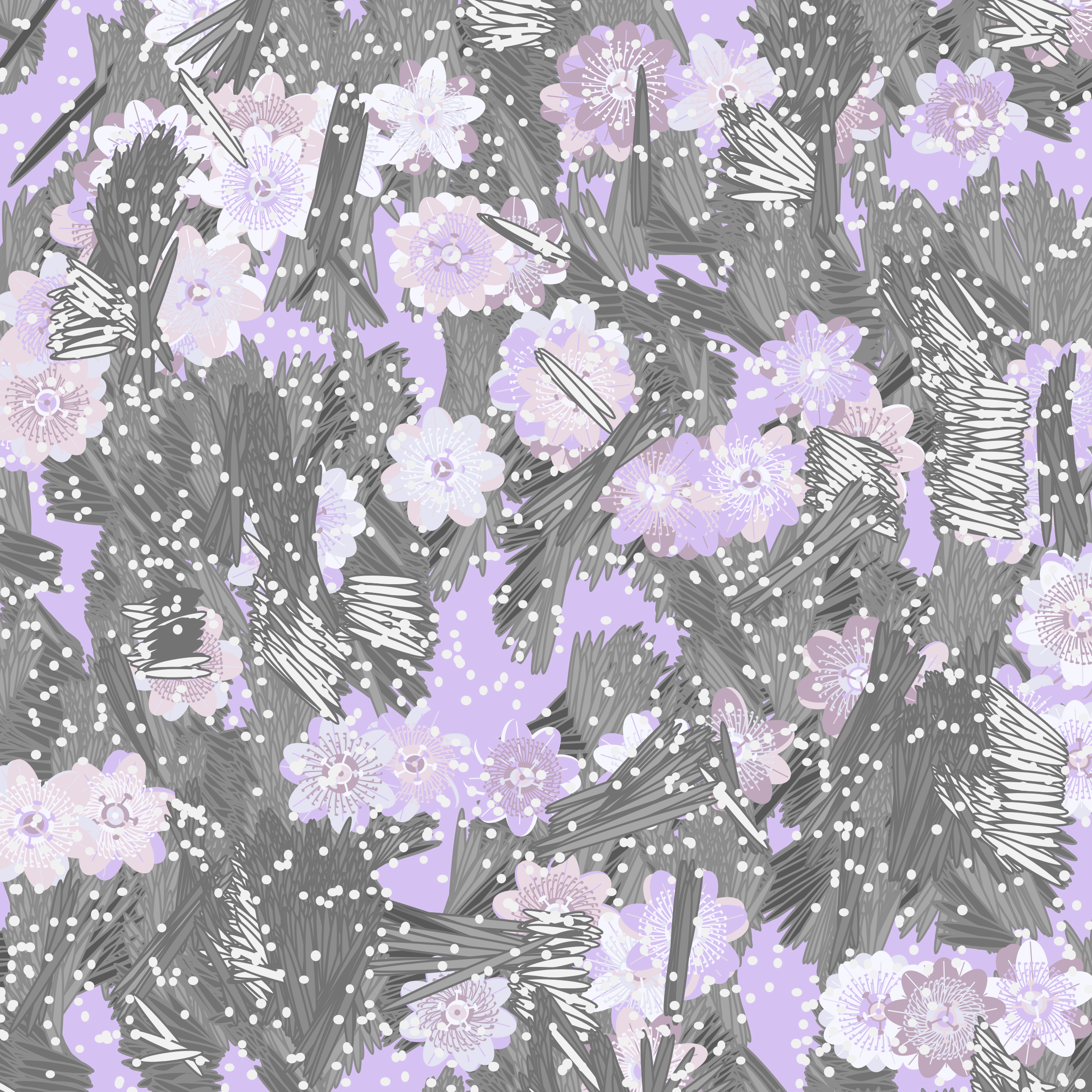 “Fragments of an infinite field” is a compositional system in which an idealized plant species is generated and arranged in a potentially infinite field of foliage. The main environmental parameter of the composition is the determination of a season of the year. The season determines the landscape’s colors and defines specific phenomena for each of them, such as rain in summer, snow in winter, petals falling in autumn, and pollen in spring. The flower has several possible variables, which can be macro aspects, affecting the entire population of the species, or micro, affecting each individual of the species differently. For example, the number of petals can be equal in all individuals or not. The number of filaments and other structures of the flower can undergo minor deviations, generating small mutations. The confusion between the figure (plant) and the background (earth, sky, other natural elements) is fascinating from a compositional point of view. The background colors are, most of the time, colors present in the figures, often breaking the boundary between them and, therefore, generating chromatic masses. In this project I also intend to research the following question: How to create parameters that resemble a living organism's growth? In this sense, the project approaches digital morphogenesis and the development of procedural organisms.