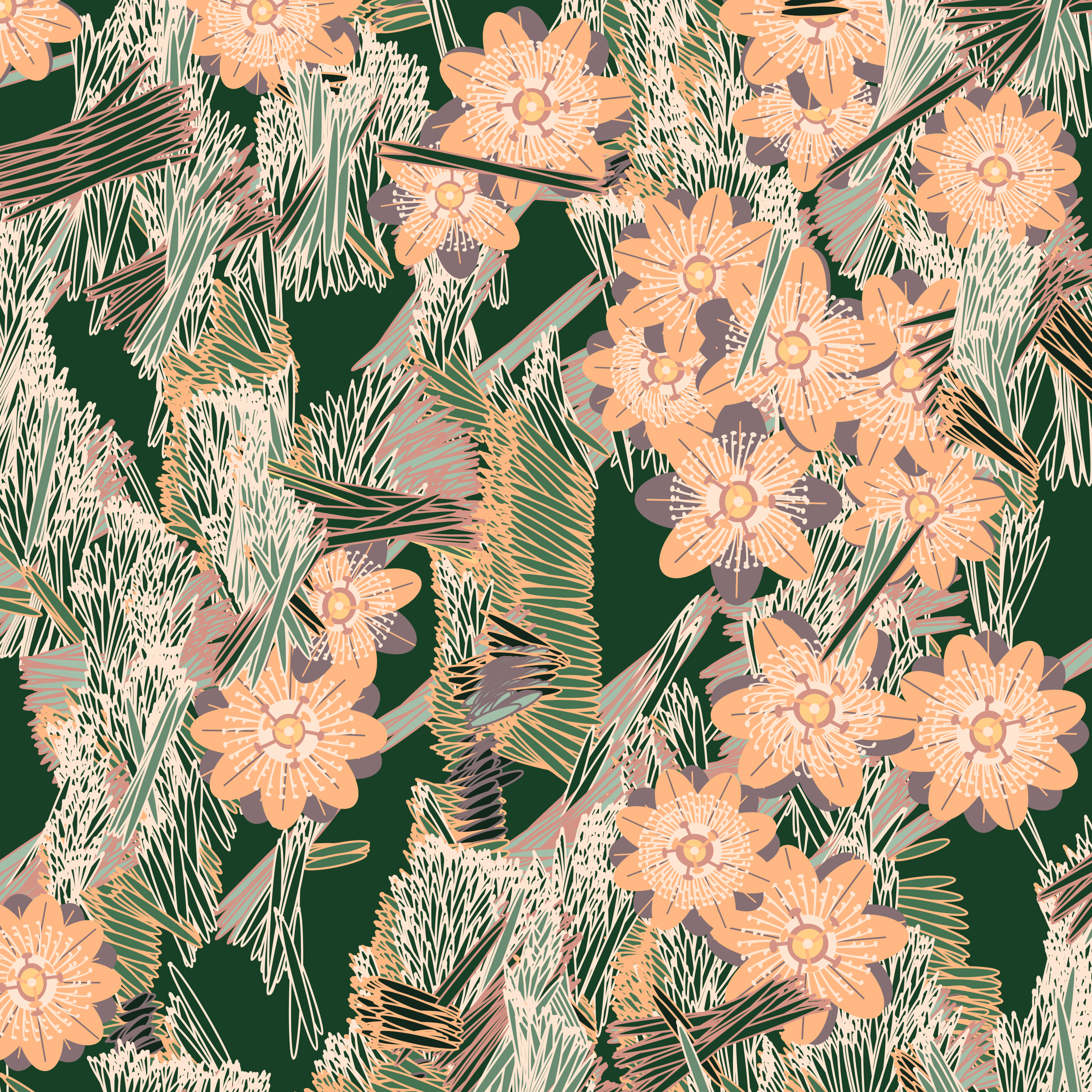 “Fragments of an infinite field” is a compositional system in which an idealized plant species is generated and arranged in a potentially infinite field of foliage. The main environmental parameter of the composition is the determination of a season of the year. The season determines the landscape’s colors and defines specific phenomena for each of them, such as rain in summer, snow in winter, petals falling in autumn, and pollen in spring. The flower has several possible variables, which can be macro aspects, affecting the entire population of the species, or micro, affecting each individual of the species differently. For example, the number of petals can be equal in all individuals or not. The number of filaments and other structures of the flower can undergo minor deviations, generating small mutations. The confusion between the figure (plant) and the background (earth, sky, other natural elements) is fascinating from a compositional point of view. The background colors are, most of the time, colors present in the figures, often breaking the boundary between them and, therefore, generating chromatic masses. In this project I also intend to research the following question: How to create parameters that resemble a living organism's growth? In this sense, the project approaches digital morphogenesis and the development of procedural organisms.
