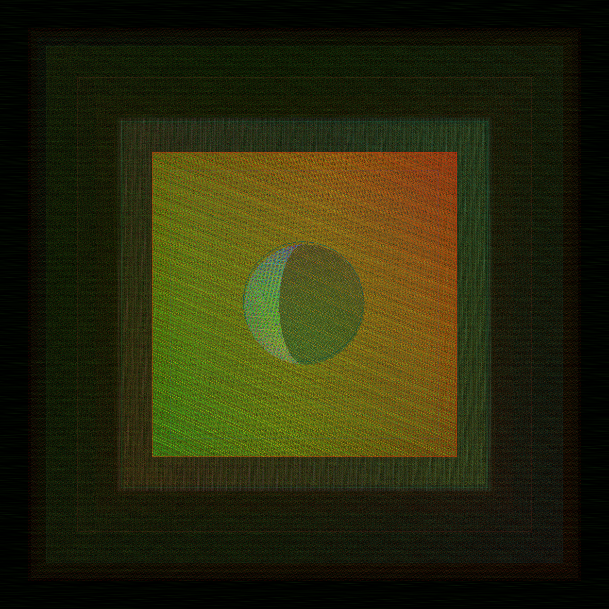 I created Gazers to be like a living artwork, to be lived with, and to not only have the artwork evolve over time but also the appreciation and experience of viewers. As I coded the work, I imagined it hanging on the wall of collectors, a fixture in their physical space. Collectors might spend a moment admiring their work, walk away for a couple hours, and then come back to be delighted, noticing the most subtle of shifts. Each layer of the work consists of pattern designs. With the passage of time, the thickness of the layered lines pulse and the direction a design moves will advance or rotate, changing our perception of color in the most subtle and optical of ways. Each day at midnight, each layer receives a new set of rules in terms of how to rise or shine over the next 24 hours. The result is color that rises and sets, echoing the change of light in our sky.