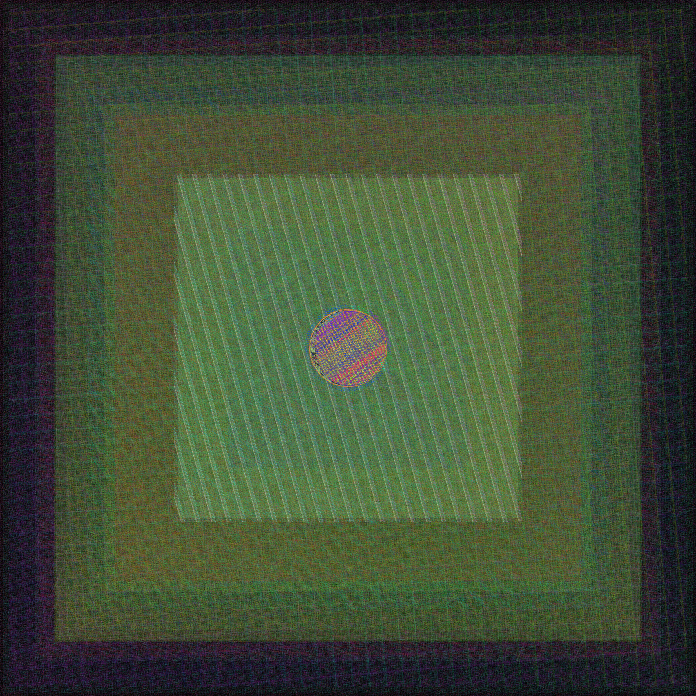 I created Gazers to be like a living artwork, to be lived with, and to not only have the artwork evolve over time but also the appreciation and experience of viewers. As I coded the work, I imagined it hanging on the wall of collectors, a fixture in their physical space. Collectors might spend a moment admiring their work, walk away for a couple hours, and then come back to be delighted, noticing the most subtle of shifts. Each layer of the work consists of pattern designs. With the passage of time, the thickness of the layered lines pulse and the direction a design moves will advance or rotate, changing our perception of color in the most subtle and optical of ways. Each day at midnight, each layer receives a new set of rules in terms of how to rise or shine over the next 24 hours. The result is color that rises and sets, echoing the change of light in our sky.