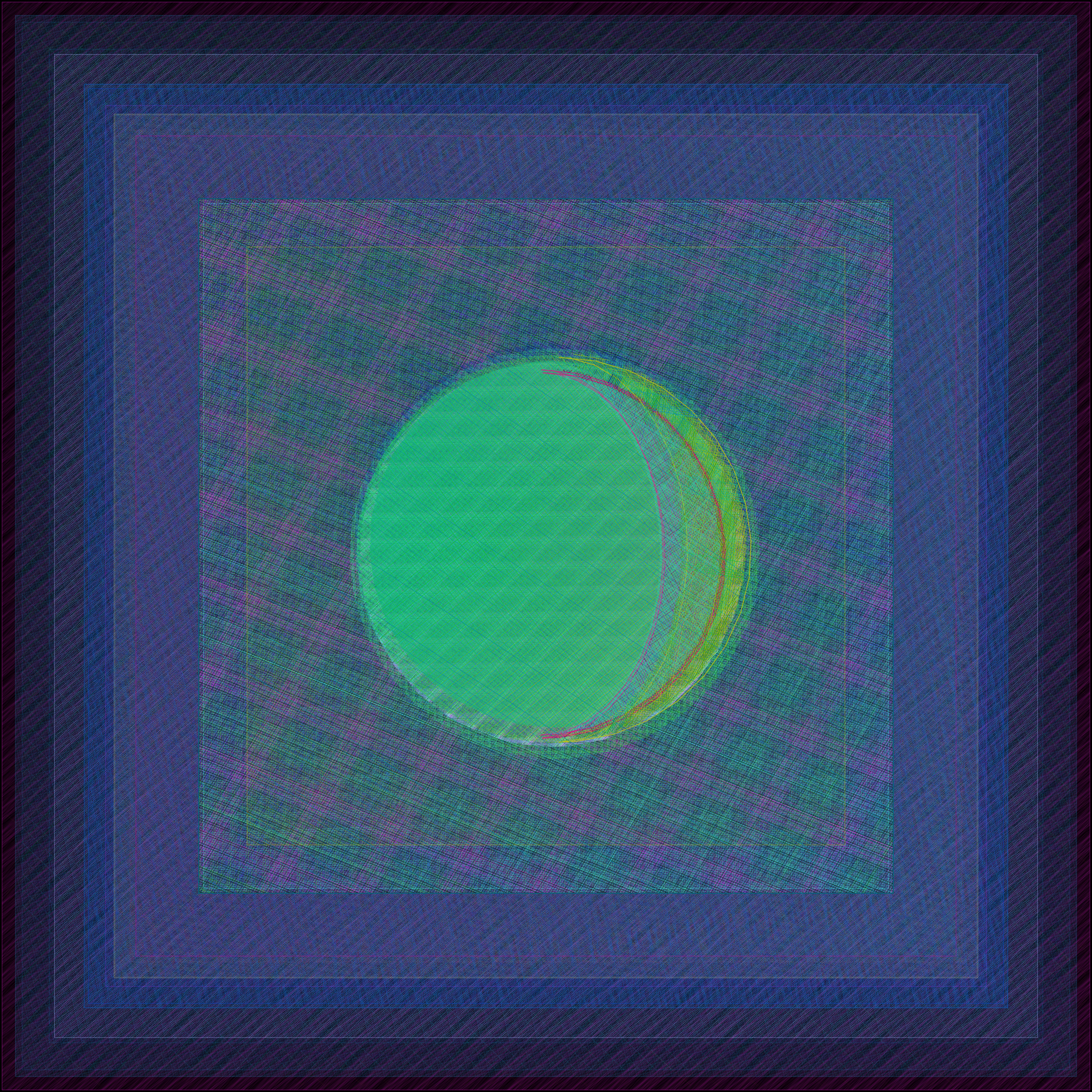 I created Gazers to be like a living artwork, to be lived with, and to not only have the artwork evolve over time but also the appreciation and experience of viewers. As I coded the work, I imagined it hanging on the wall of collectors, a fixture in their physical space. Collectors might spend a moment admiring their work, walk away for a couple hours, and then come back to be delighted, noticing the most subtle of shifts. Each layer of the work consists of pattern designs. With the passage of time, the thickness of the layered lines pulse and the direction a design moves will advance or rotate, changing our perception of color in the most subtle and optical of ways. Each day at midnight, each layer receives a new set of rules in terms of how to rise or shine over the next 24 hours. The result is color that rises and sets, echoing the change of light in our sky.