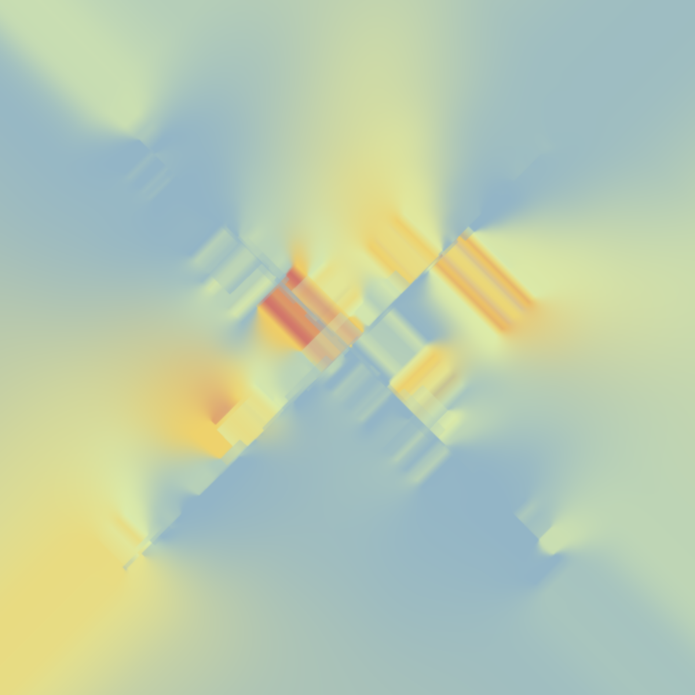 In this meditative exploration of color and form, iridescent structures emerge from transformations to a flat plane, each emanating an ethereal glow. [Shortcuts] spacebar: pause/resume, q: toggle quality, s: save screenshot. This artwork is responsive and adapts to any screen size. Note: requires a WebGL2-enabled browser.