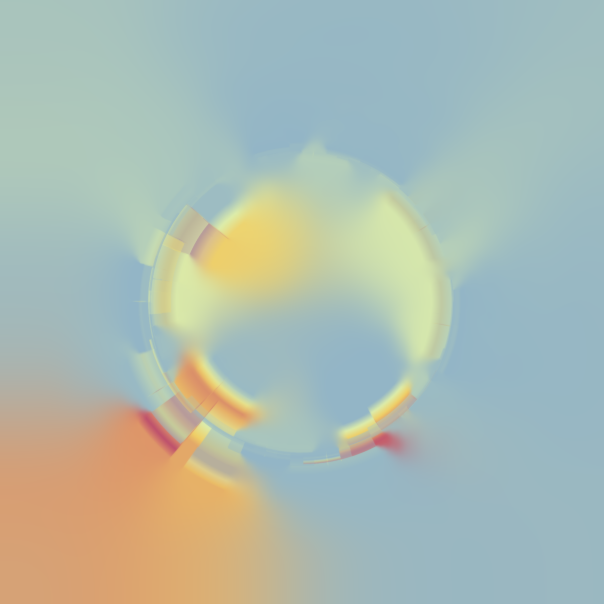 In this meditative exploration of color and form, iridescent structures emerge from transformations to a flat plane, each emanating an ethereal glow. [Shortcuts] spacebar: pause/resume, q: toggle quality, s: save screenshot. This artwork is responsive and adapts to any screen size. Note: requires a WebGL2-enabled browser.