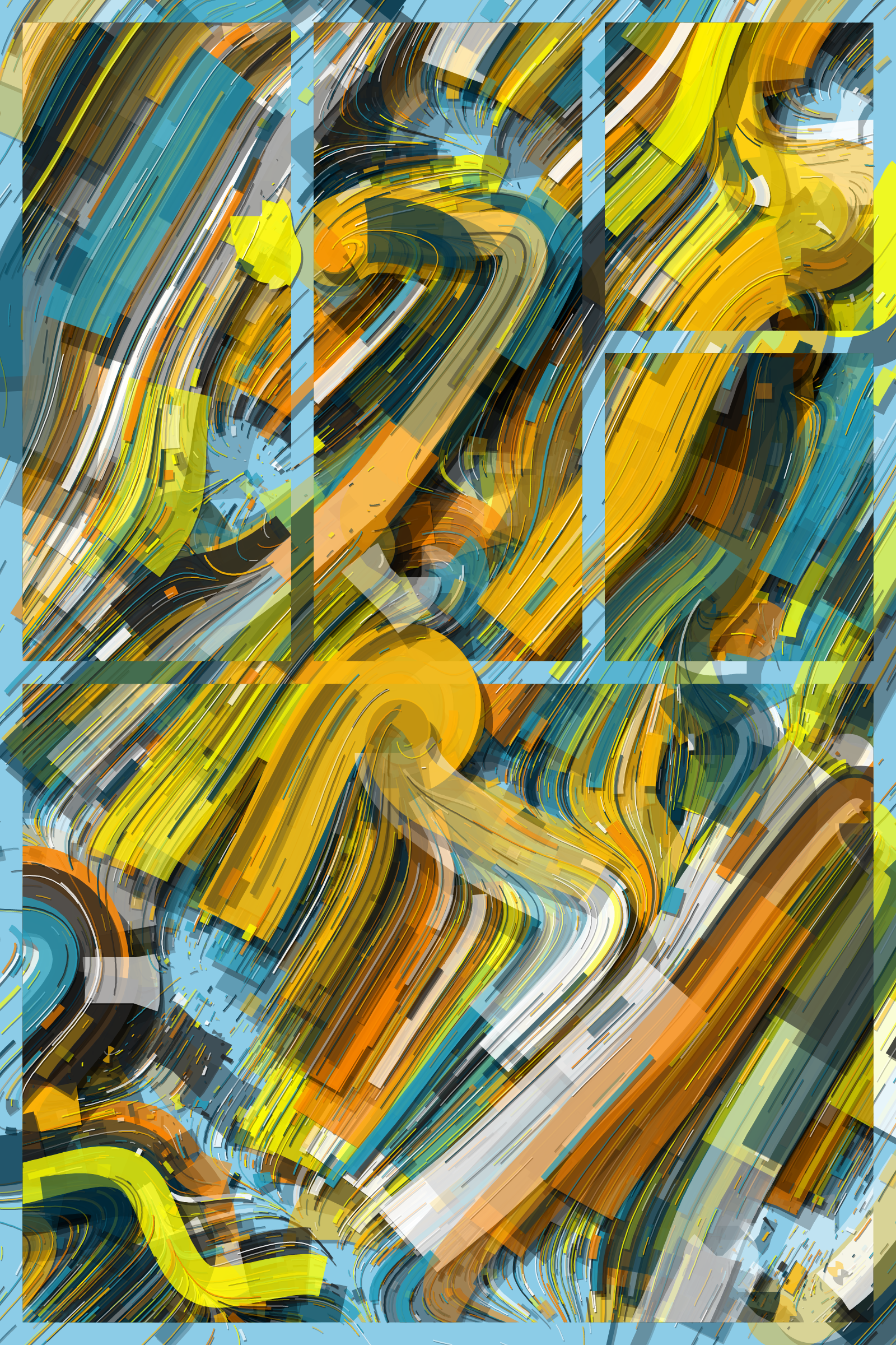 The Hōrō series proposes to explore representations of multiple flows through different abstract areas, while playing on a wide chromatic diversity rich with 55 palettes inspired by as many graffiti artists, urban calligraphers using color as a trace of their passages.