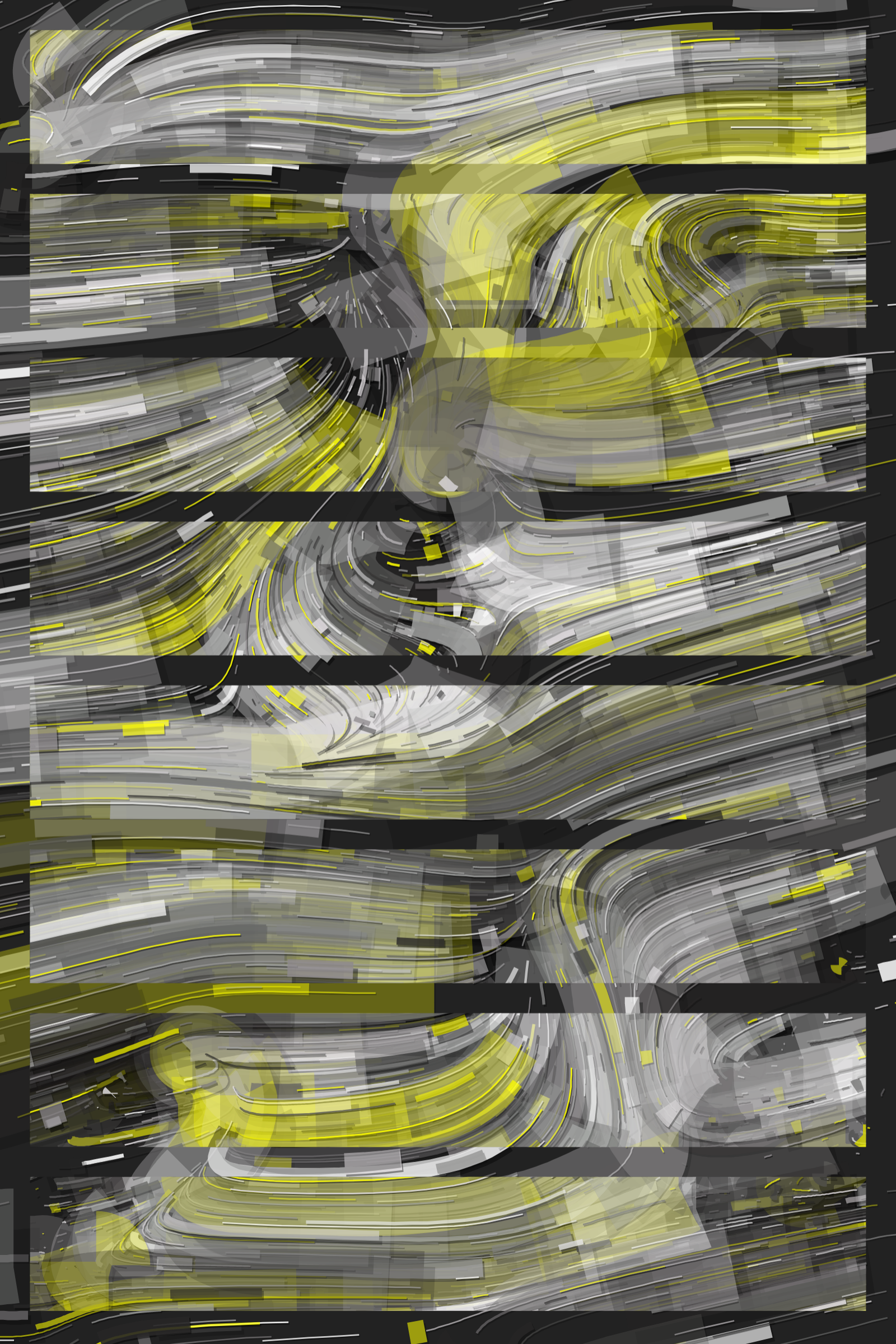 The Hōrō series proposes to explore representations of multiple flows through different abstract areas, while playing on a wide chromatic diversity rich with 55 palettes inspired by as many graffiti artists, urban calligraphers using color as a trace of their passages.