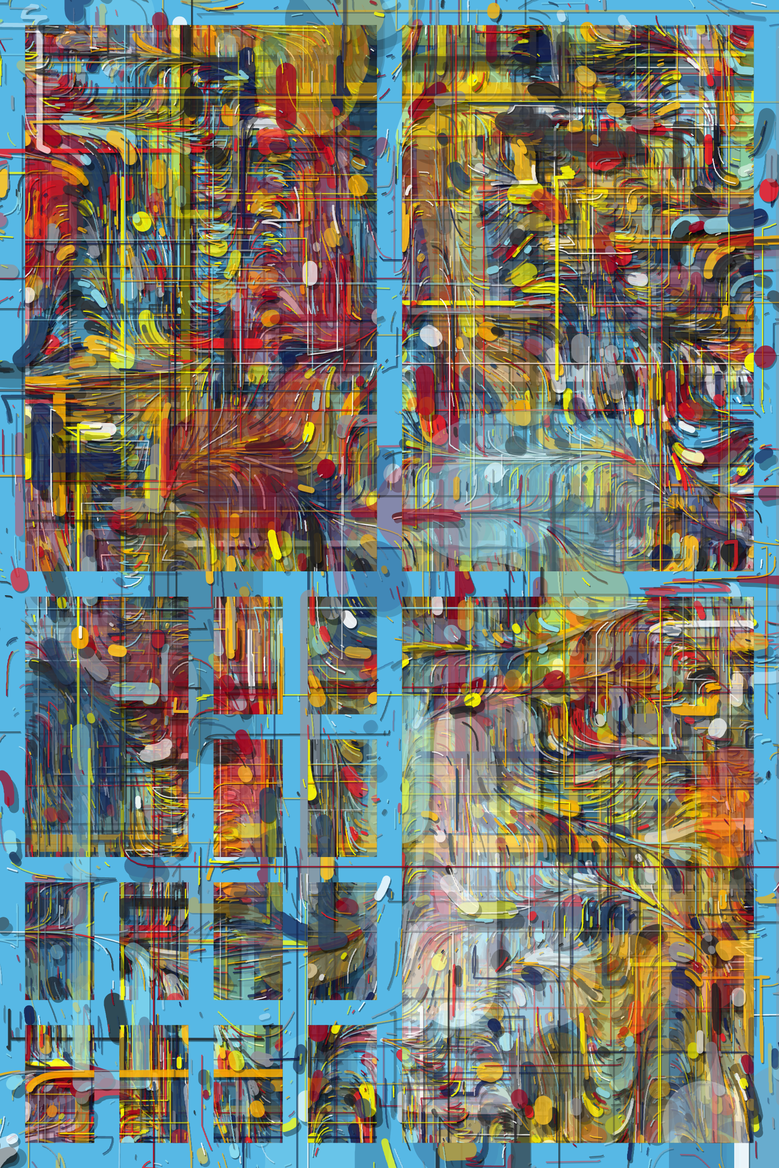 The Hōrō series proposes to explore representations of multiple flows through different abstract areas, while playing on a wide chromatic diversity rich with 55 palettes inspired by as many graffiti artists, urban calligraphers using color as a trace of their passages.