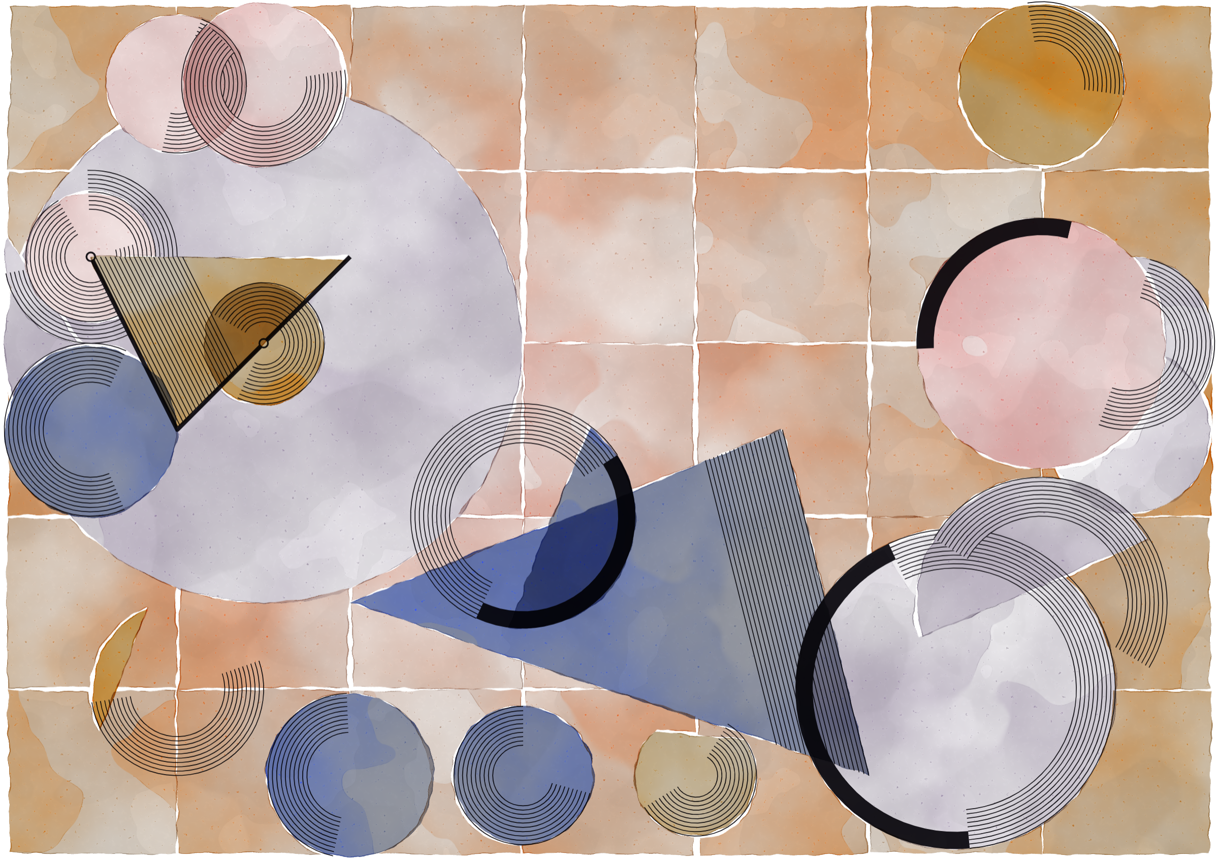 *Inprecision* is exploring the tension between the precision offered by computers and the imperfections inherent in classic art production approaches. The generative system is based on circles and triangles, perfectly aligned with each other and placed on a grid, but rendered with a technique inspired by the look of water color giving a high degree of imperfection in the rendered output. The precision of the underlying system is then again accentuated by a layer of hyper precise line drawings, outlining the used geometries and providing a scaffold for the underlying colors.