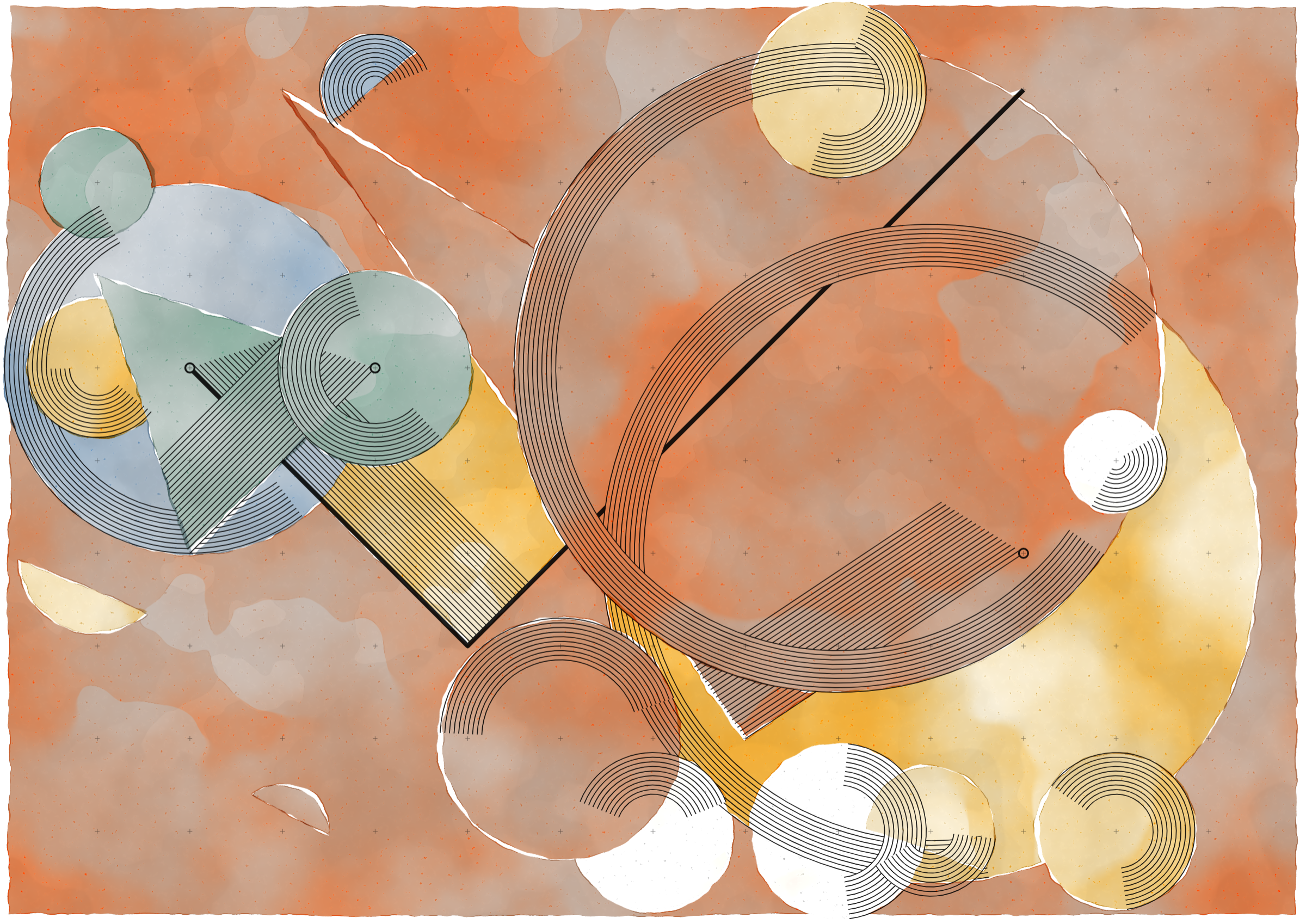 *Inprecision* is exploring the tension between the precision offered by computers and the imperfections inherent in classic art production approaches. The generative system is based on circles and triangles, perfectly aligned with each other and placed on a grid, but rendered with a technique inspired by the look of water color giving a high degree of imperfection in the rendered output. The precision of the underlying system is then again accentuated by a layer of hyper precise line drawings, outlining the used geometries and providing a scaffold for the underlying colors.