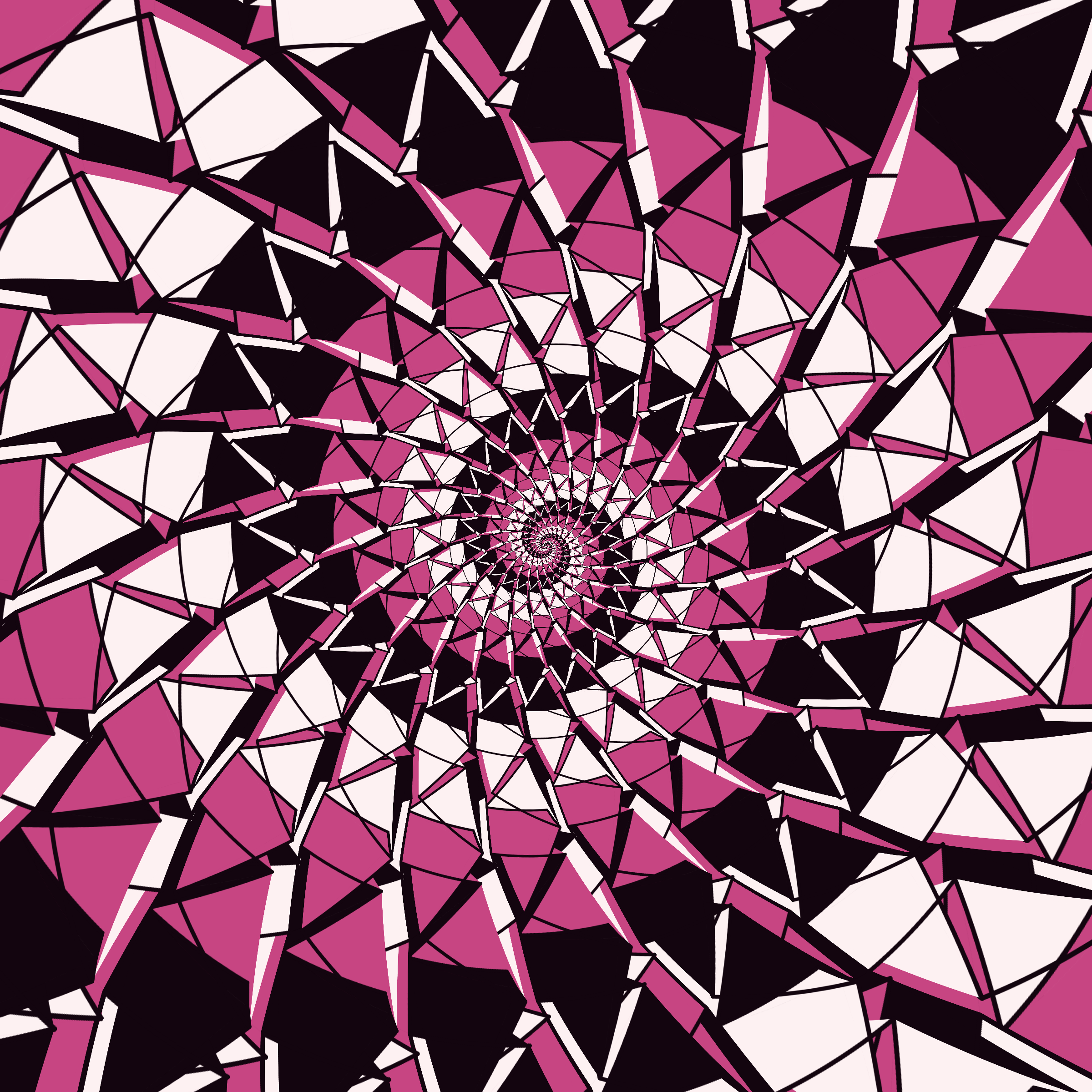 Escher-style tiling of a plane, gone wrong. Each image spins hash-driven colors, shapes, and symmetries into infinity. Fly through the spiral as it morphs between beauty and madness. Keys: F = Fly through/back, D = Distort on/off, Esc = Stop, S = Save image.