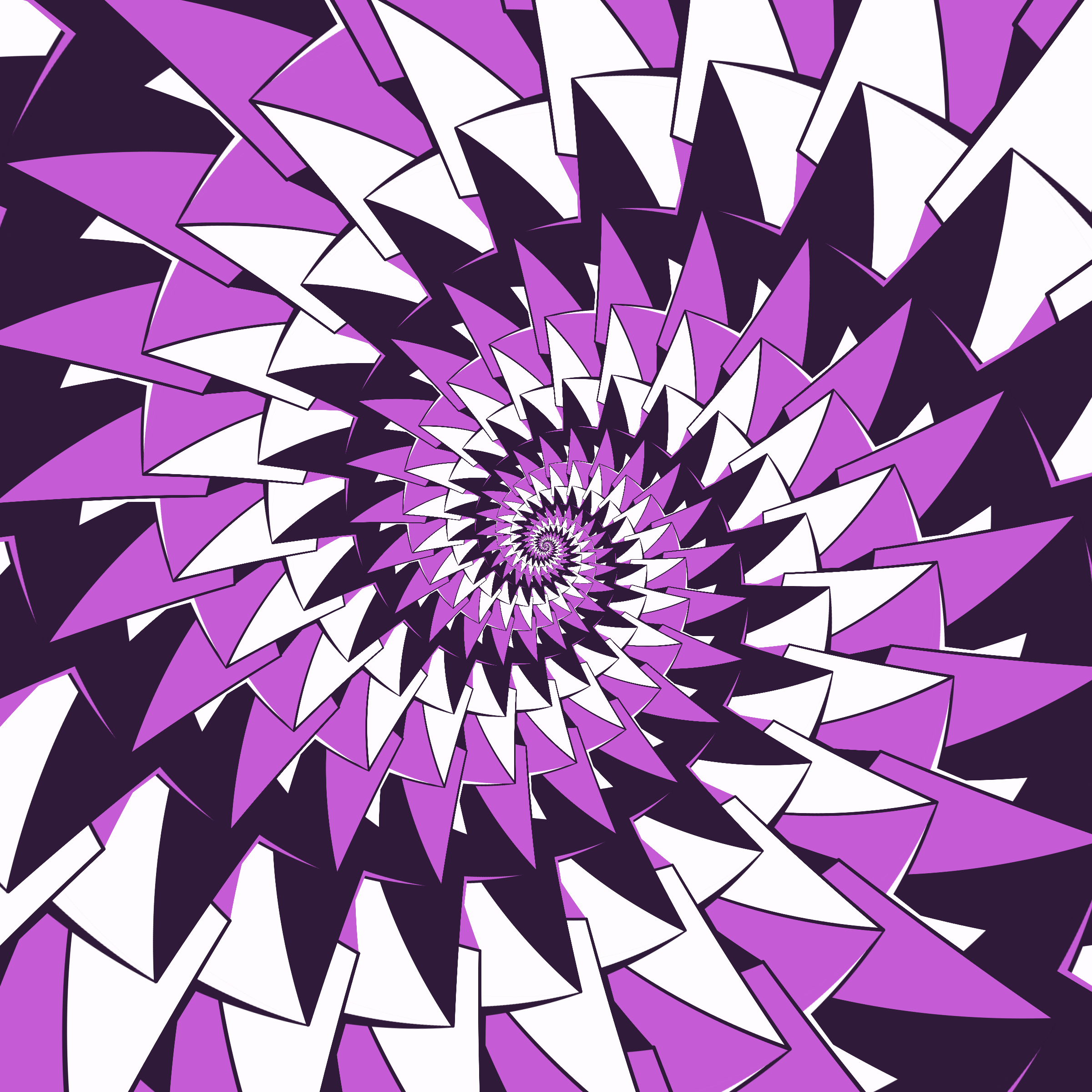 Escher-style tiling of a plane, gone wrong. Each image spins hash-driven colors, shapes, and symmetries into infinity. Fly through the spiral as it morphs between beauty and madness. Keys: F = Fly through/back, D = Distort on/off, Esc = Stop, S = Save image.
