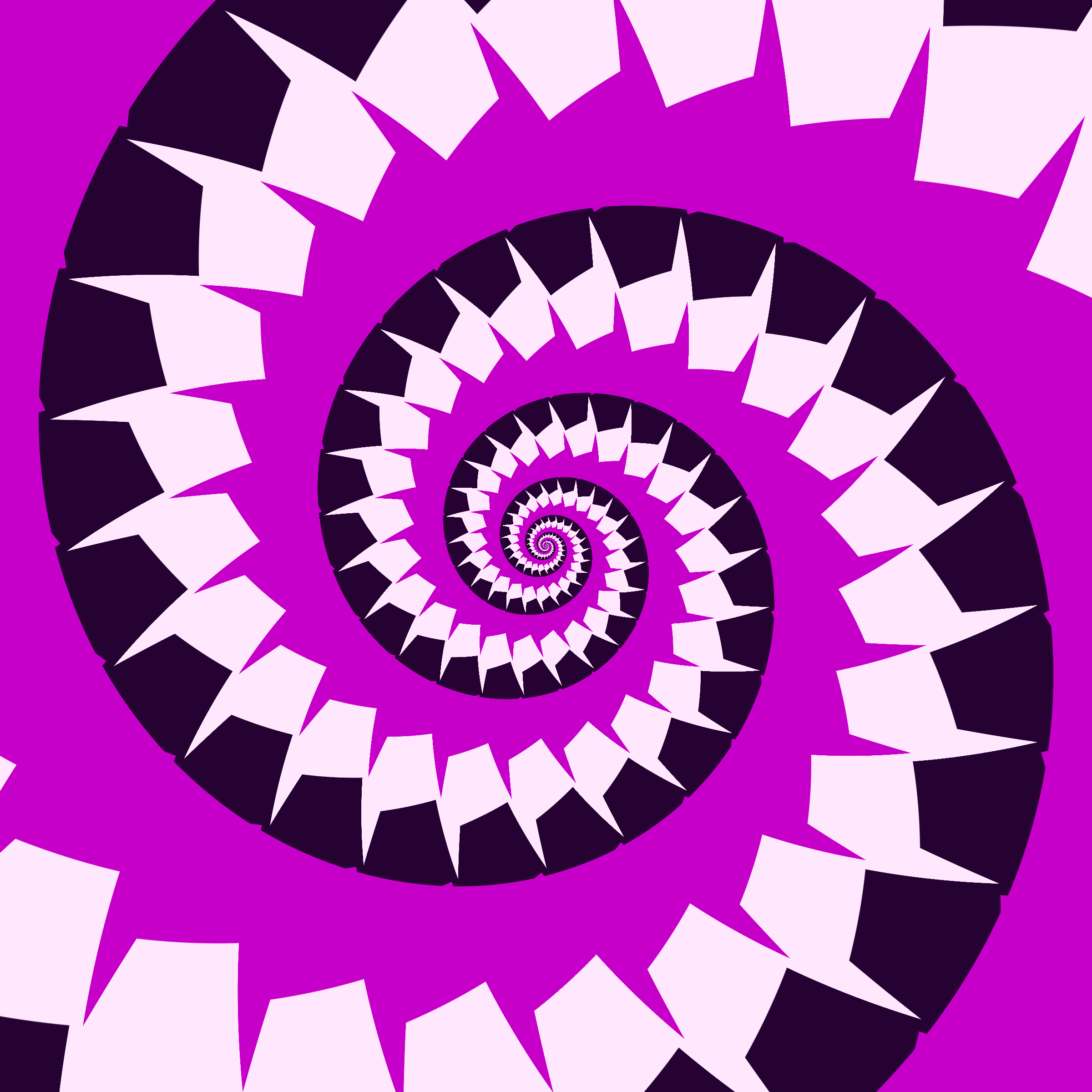 Escher-style tiling of a plane, gone wrong. Each image spins hash-driven colors, shapes, and symmetries into infinity. Fly through the spiral as it morphs between beauty and madness. Keys: F = Fly through/back, D = Distort on/off, Esc = Stop, S = Save image.