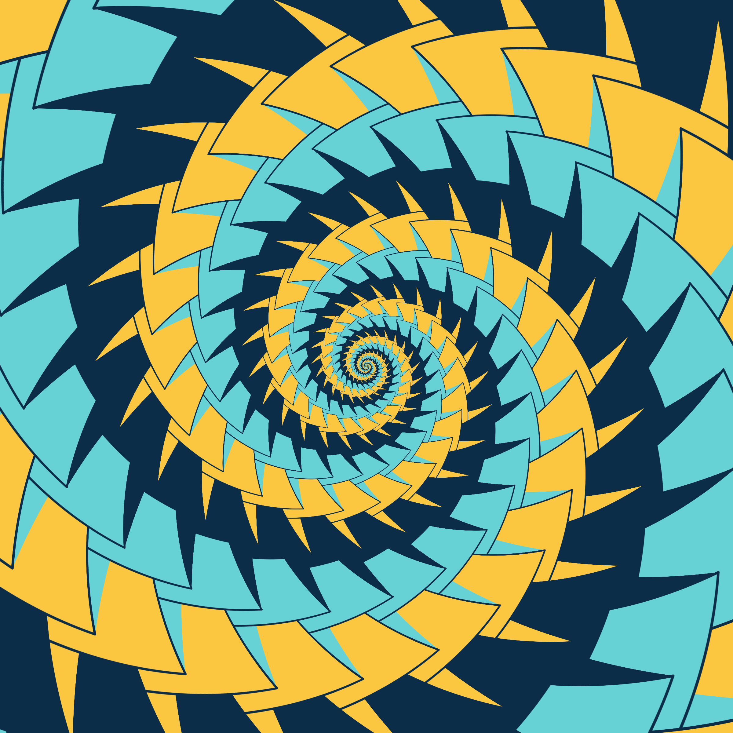 Escher-style tiling of a plane, gone wrong. Each image spins hash-driven colors, shapes, and symmetries into infinity. Fly through the spiral as it morphs between beauty and madness. Keys: F = Fly through/back, D = Distort on/off, Esc = Stop, S = Save image.