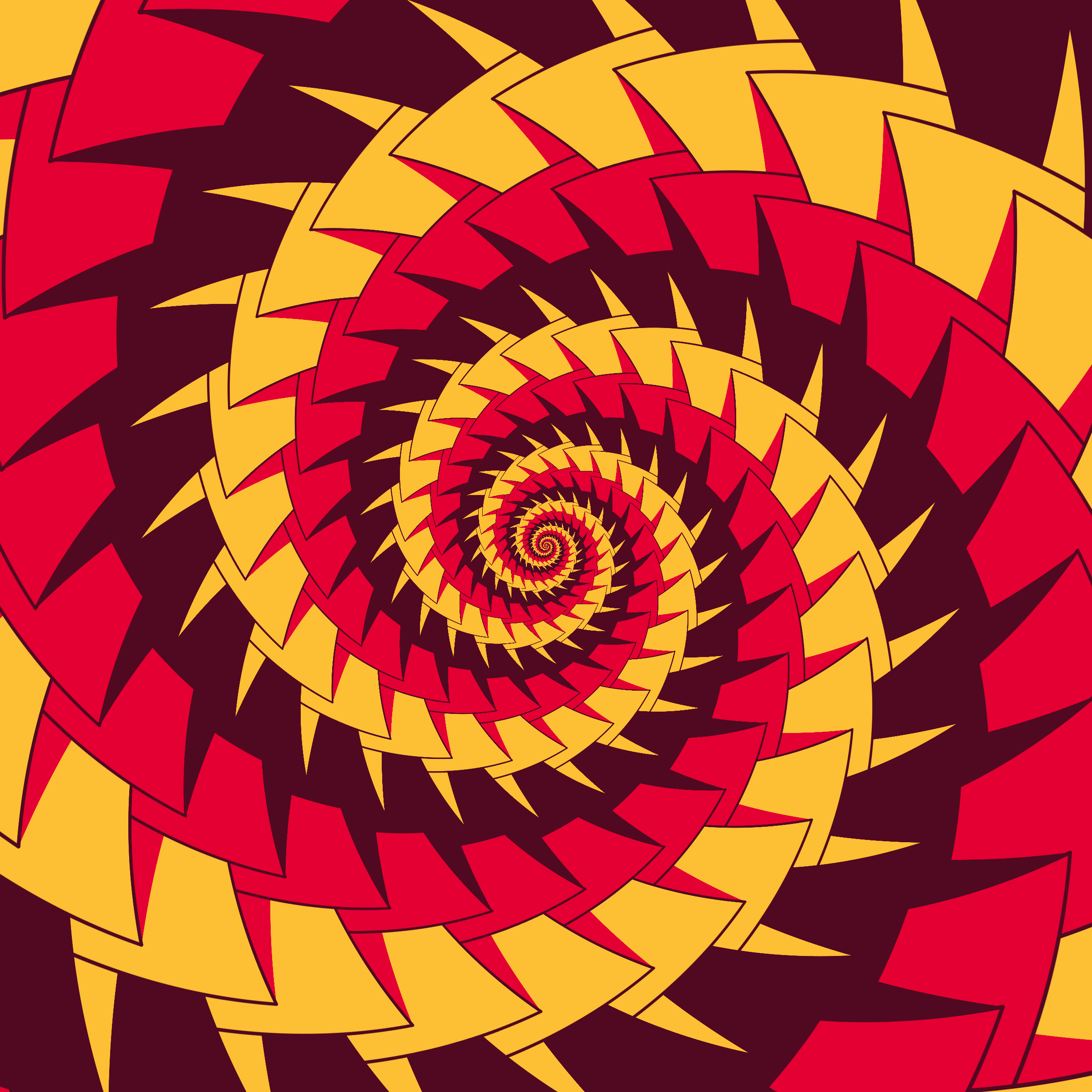 Escher-style tiling of a plane, gone wrong. Each image spins hash-driven colors, shapes, and symmetries into infinity. Fly through the spiral as it morphs between beauty and madness. Keys: F = Fly through/back, D = Distort on/off, Esc = Stop, S = Save image.