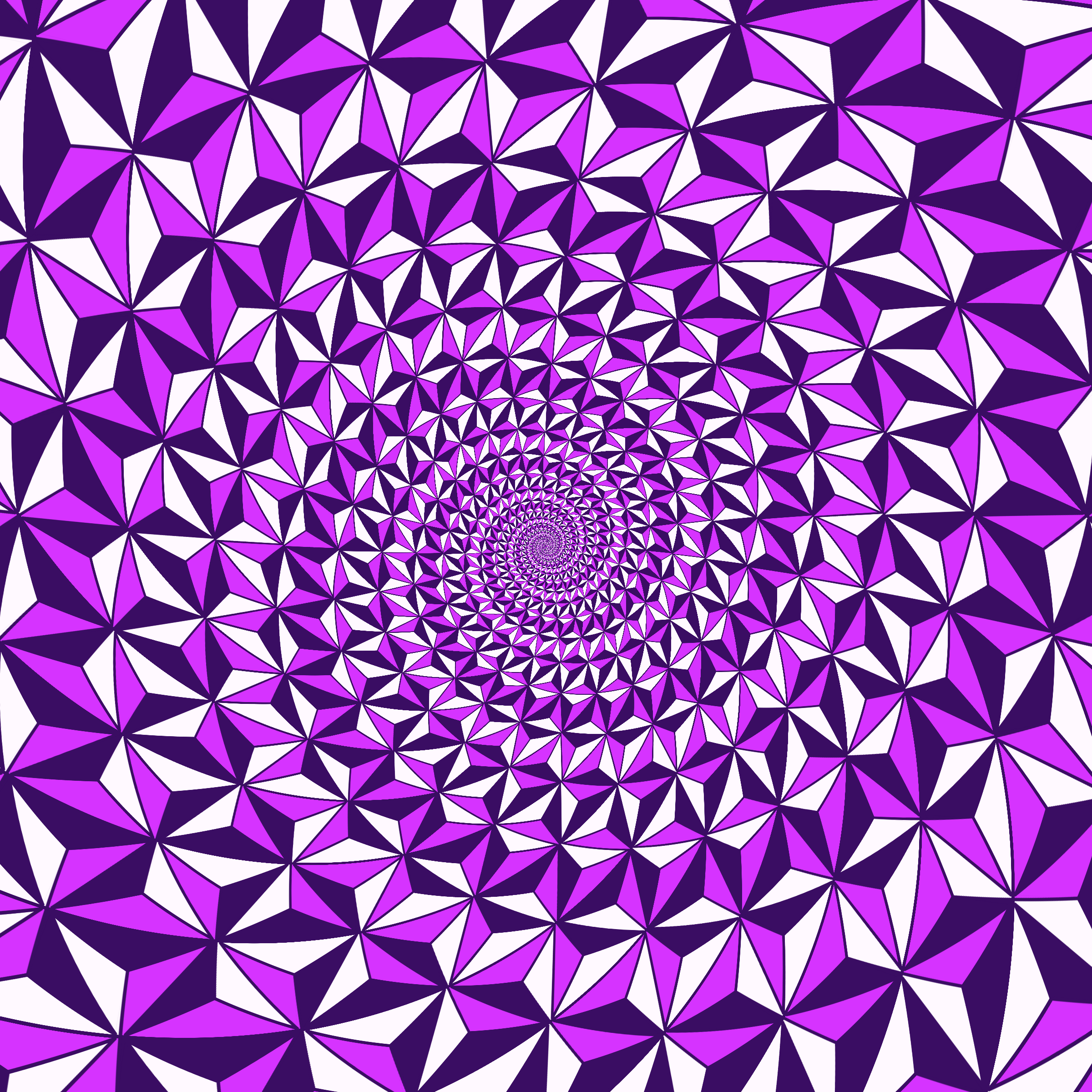 Escher-style tiling of a plane, gone wrong. Each image spins hash-driven colors, shapes, and symmetries into infinity. Fly through the spiral as it morphs between beauty and madness. Keys: F = Fly through/back, D = Distort on/off, Esc = Stop, S = Save image.
