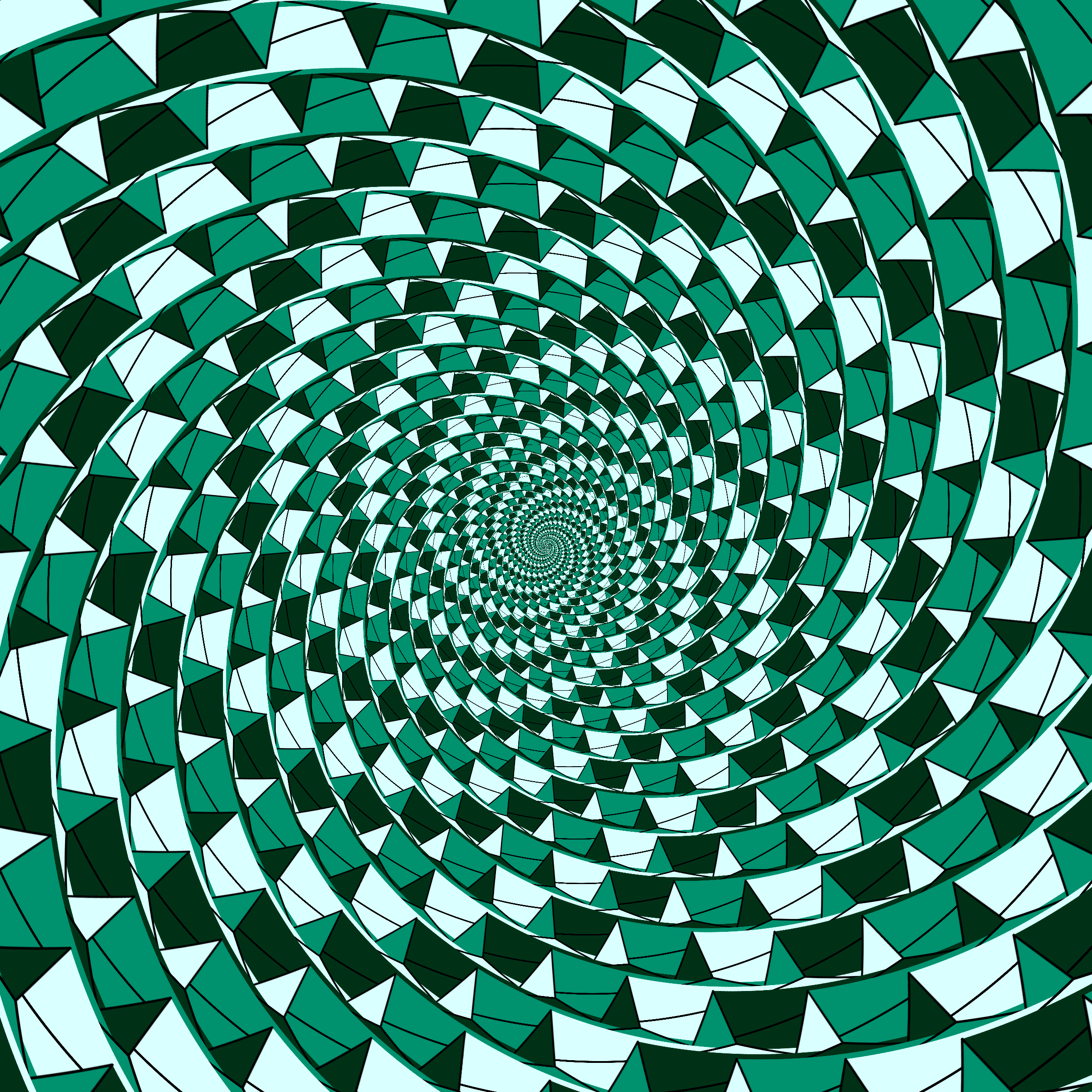 Escher-style tiling of a plane, gone wrong. Each image spins hash-driven colors, shapes, and symmetries into infinity. Fly through the spiral as it morphs between beauty and madness. Keys: F = Fly through/back, D = Distort on/off, Esc = Stop, S = Save image.