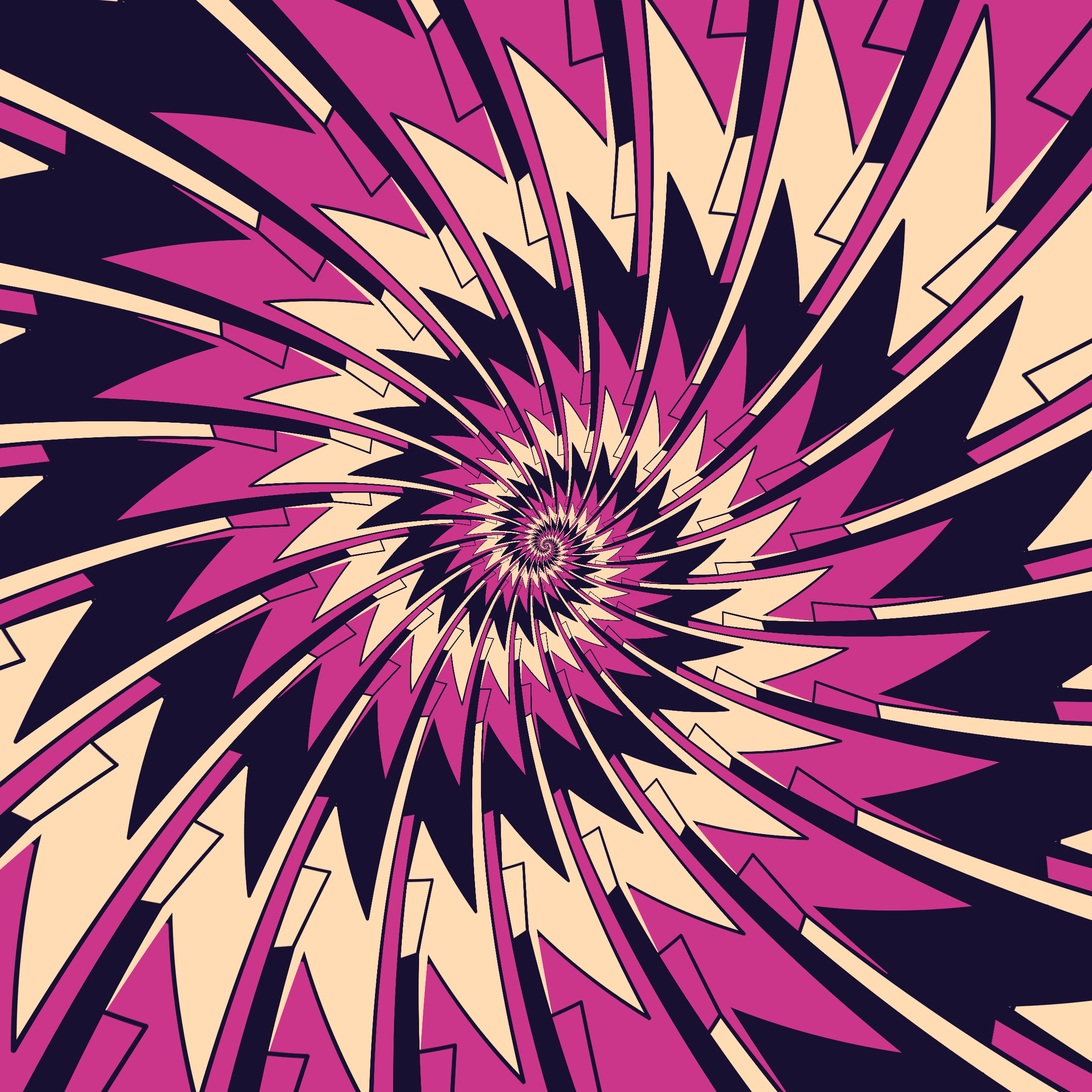 Escher-style tiling of a plane, gone wrong. Each image spins hash-driven colors, shapes, and symmetries into infinity. Fly through the spiral as it morphs between beauty and madness. Keys: F = Fly through/back, D = Distort on/off, Esc = Stop, S = Save image.