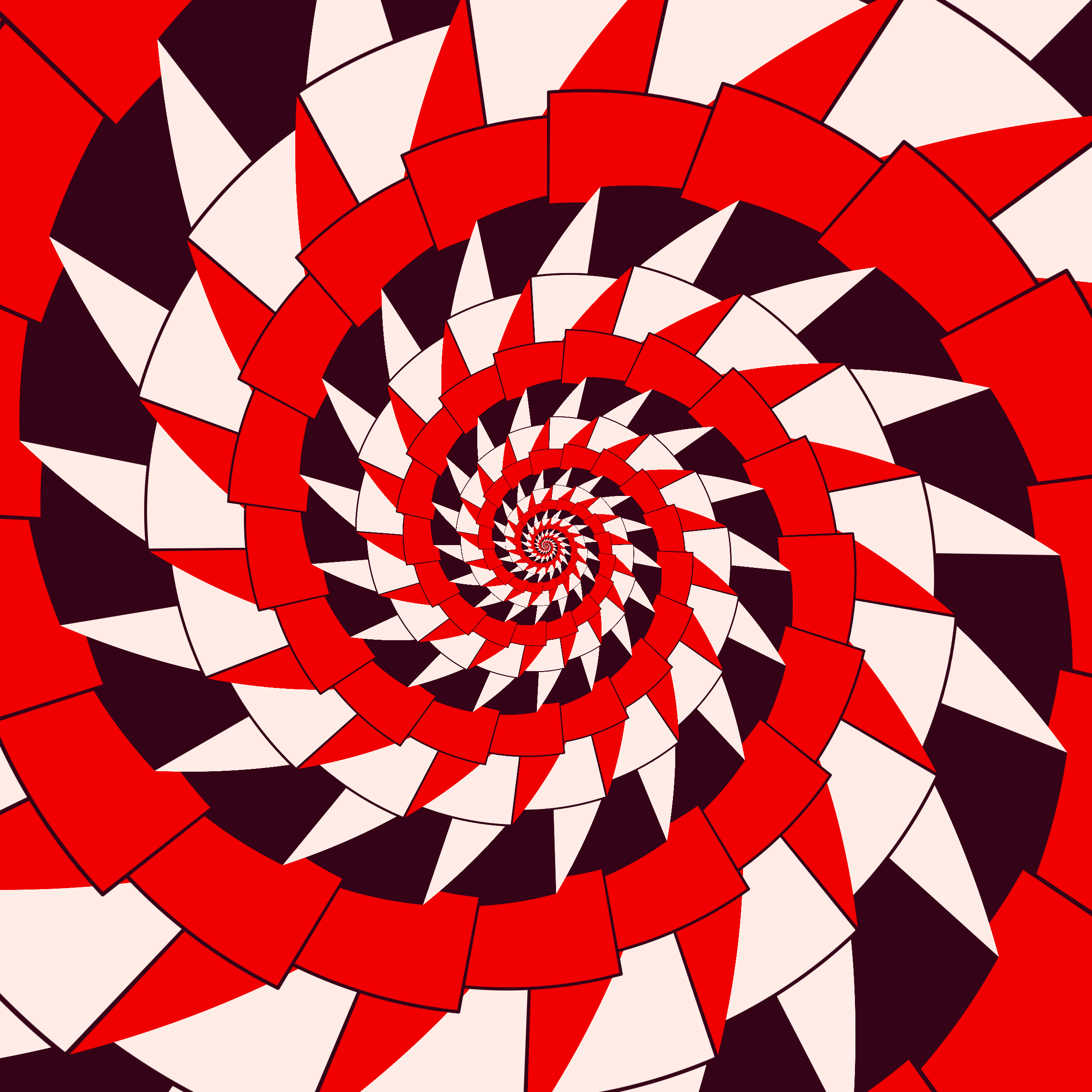 Escher-style tiling of a plane, gone wrong. Each image spins hash-driven colors, shapes, and symmetries into infinity. Fly through the spiral as it morphs between beauty and madness. Keys: F = Fly through/back, D = Distort on/off, Esc = Stop, S = Save image.