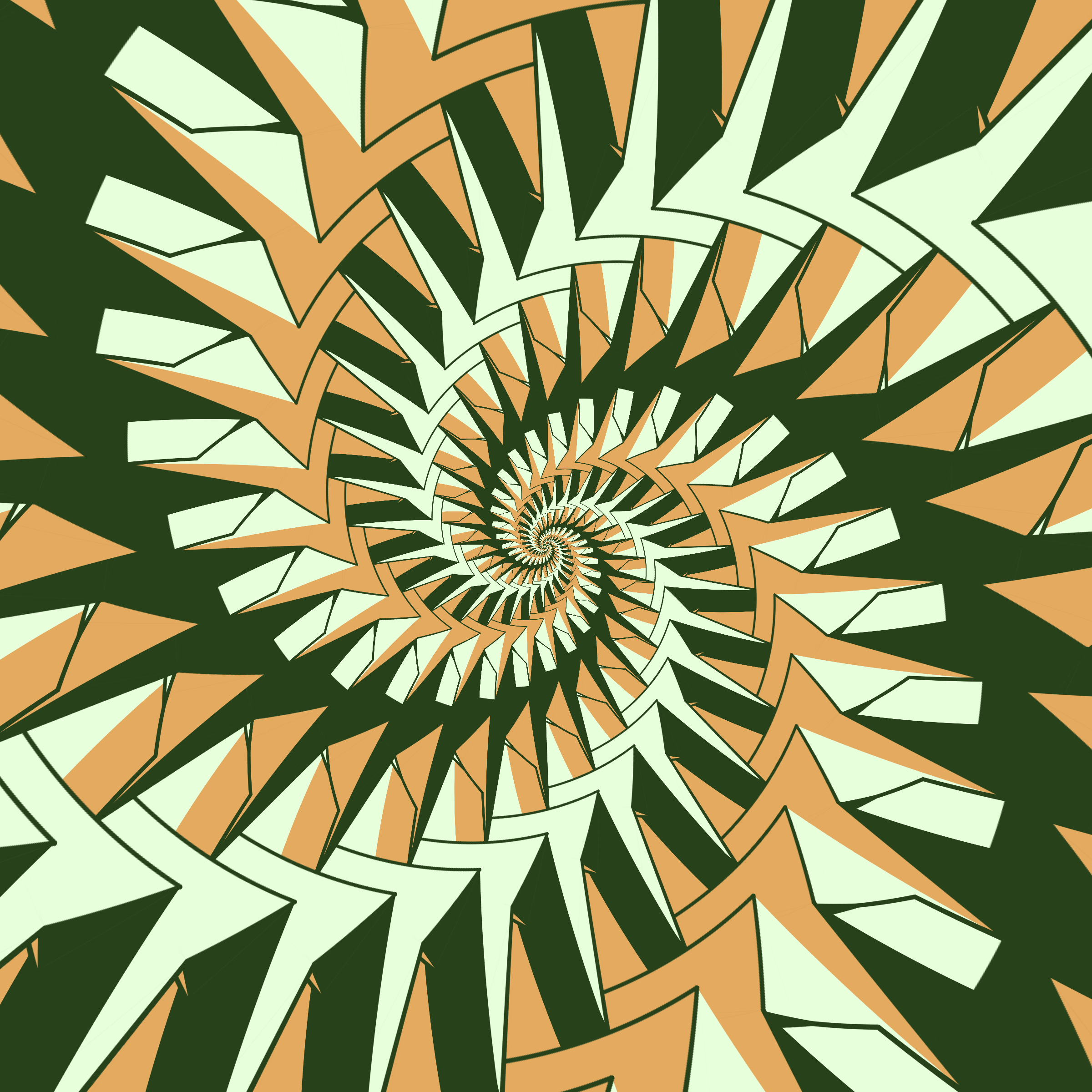 Escher-style tiling of a plane, gone wrong. Each image spins hash-driven colors, shapes, and symmetries into infinity. Fly through the spiral as it morphs between beauty and madness. Keys: F = Fly through/back, D = Distort on/off, Esc = Stop, S = Save image.