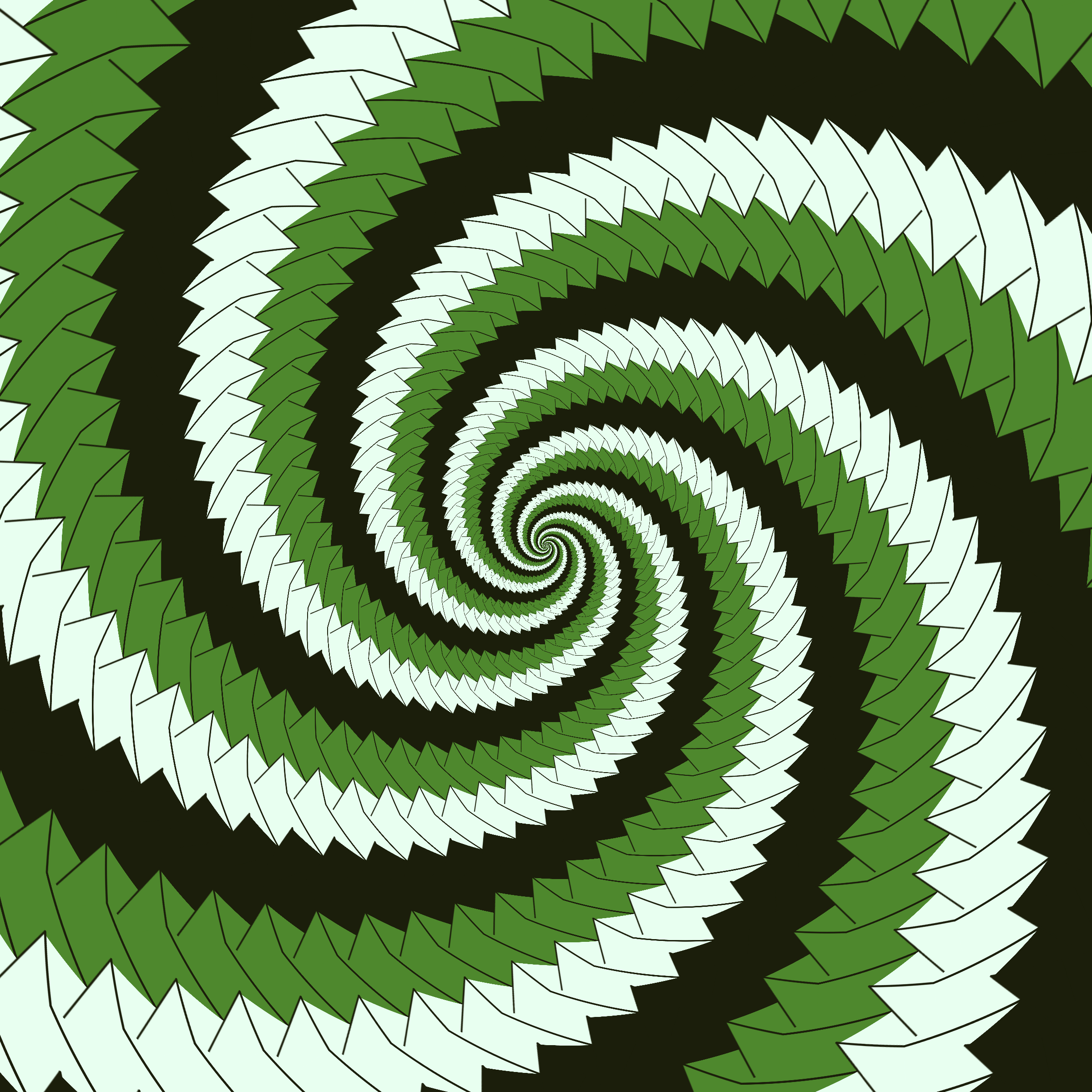 Escher-style tiling of a plane, gone wrong. Each image spins hash-driven colors, shapes, and symmetries into infinity. Fly through the spiral as it morphs between beauty and madness. Keys: F = Fly through/back, D = Distort on/off, Esc = Stop, S = Save image.