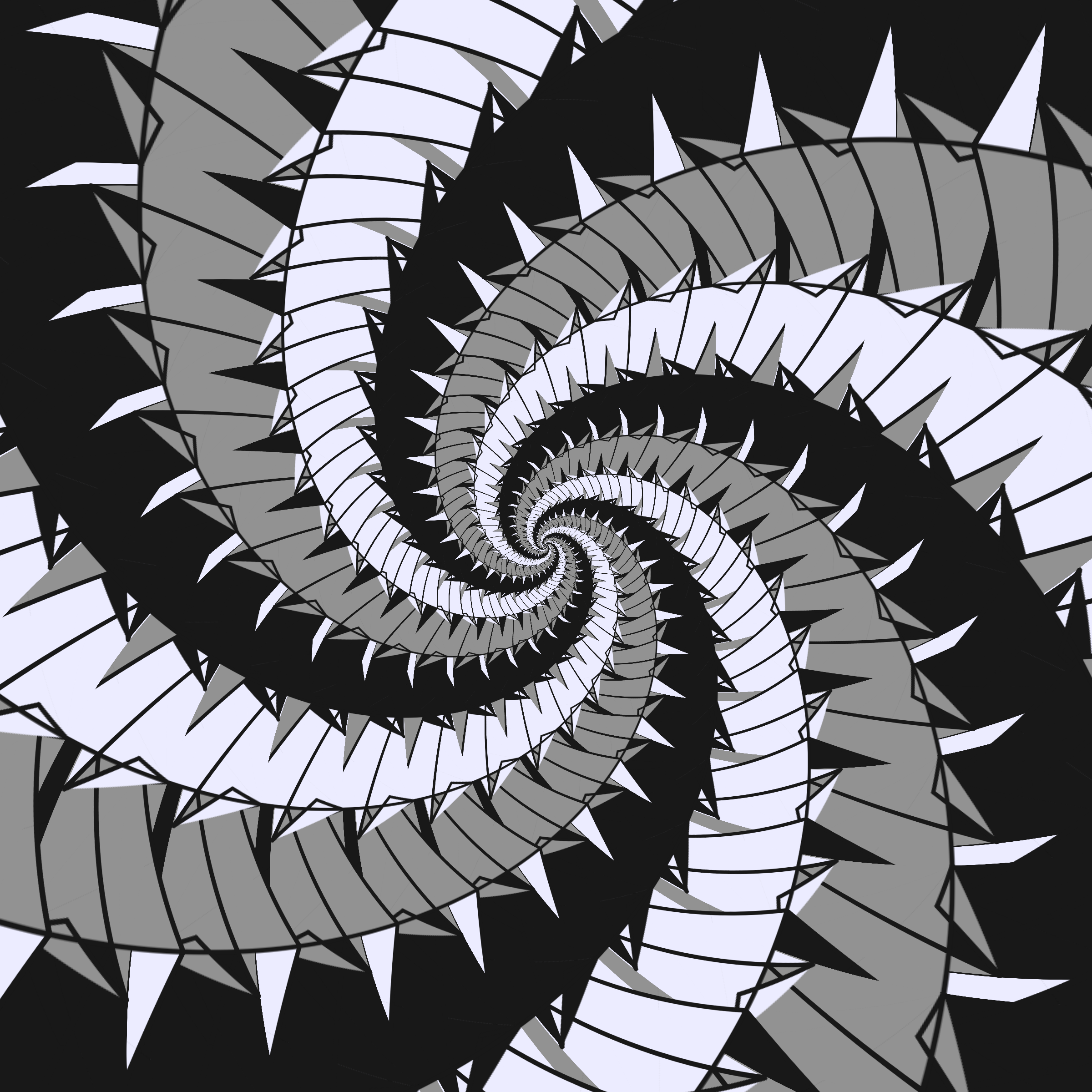 Escher-style tiling of a plane, gone wrong. Each image spins hash-driven colors, shapes, and symmetries into infinity. Fly through the spiral as it morphs between beauty and madness. Keys: F = Fly through/back, D = Distort on/off, Esc = Stop, S = Save image.