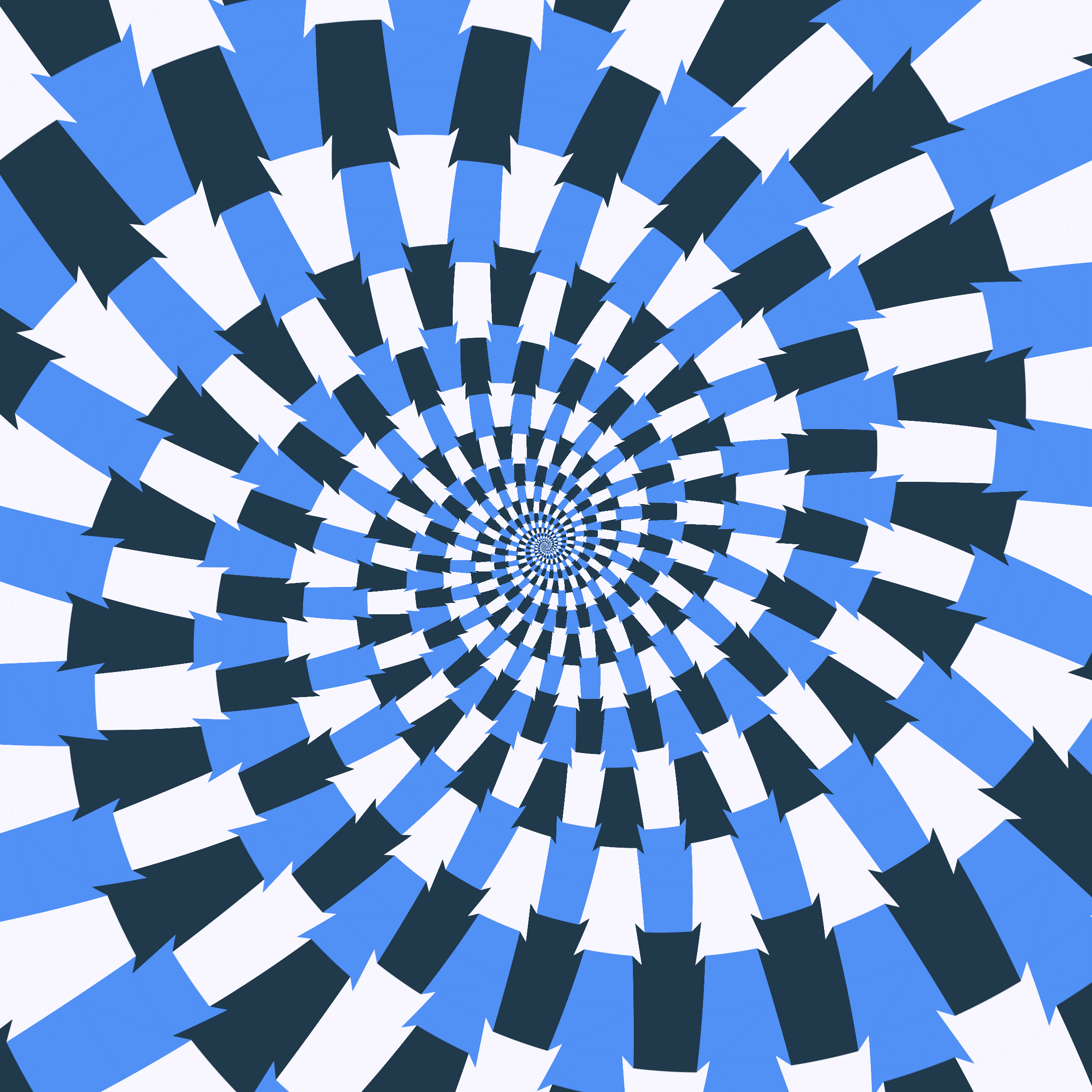Escher-style tiling of a plane, gone wrong. Each image spins hash-driven colors, shapes, and symmetries into infinity. Fly through the spiral as it morphs between beauty and madness. Keys: F = Fly through/back, D = Distort on/off, Esc = Stop, S = Save image.