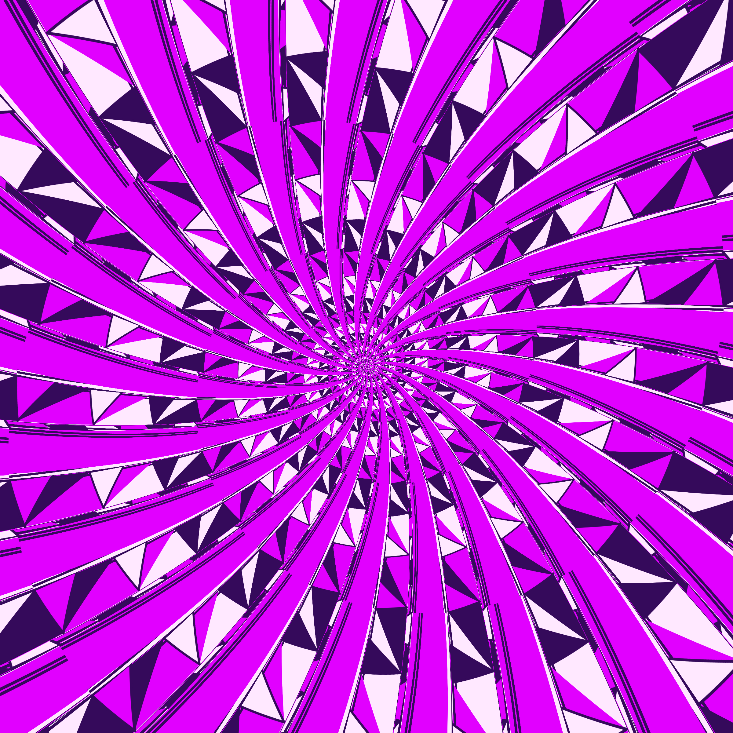 Escher-style tiling of a plane, gone wrong. Each image spins hash-driven colors, shapes, and symmetries into infinity. Fly through the spiral as it morphs between beauty and madness. Keys: F = Fly through/back, D = Distort on/off, Esc = Stop, S = Save image.