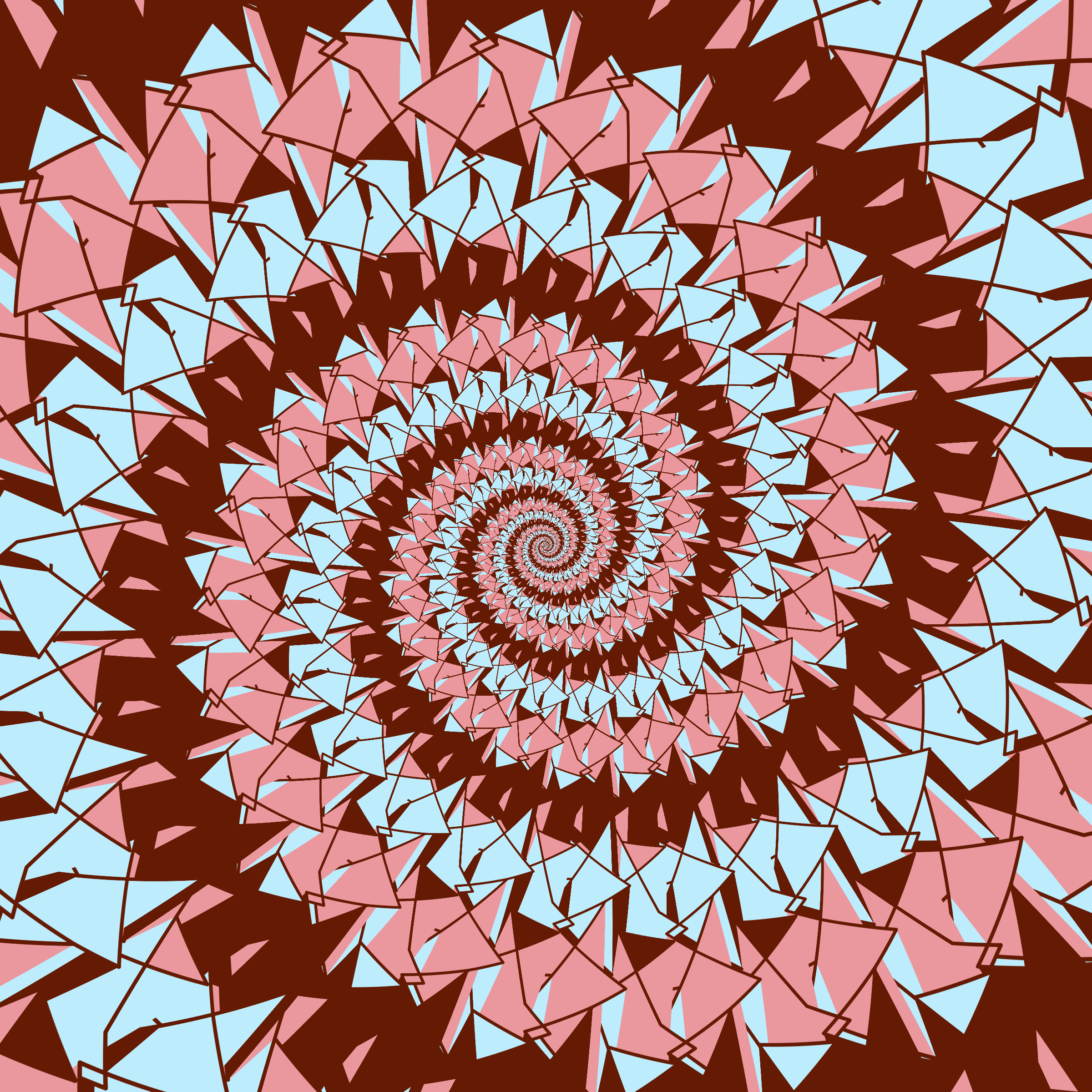 Escher-style tiling of a plane, gone wrong. Each image spins hash-driven colors, shapes, and symmetries into infinity. Fly through the spiral as it morphs between beauty and madness. Keys: F = Fly through/back, D = Distort on/off, Esc = Stop, S = Save image.