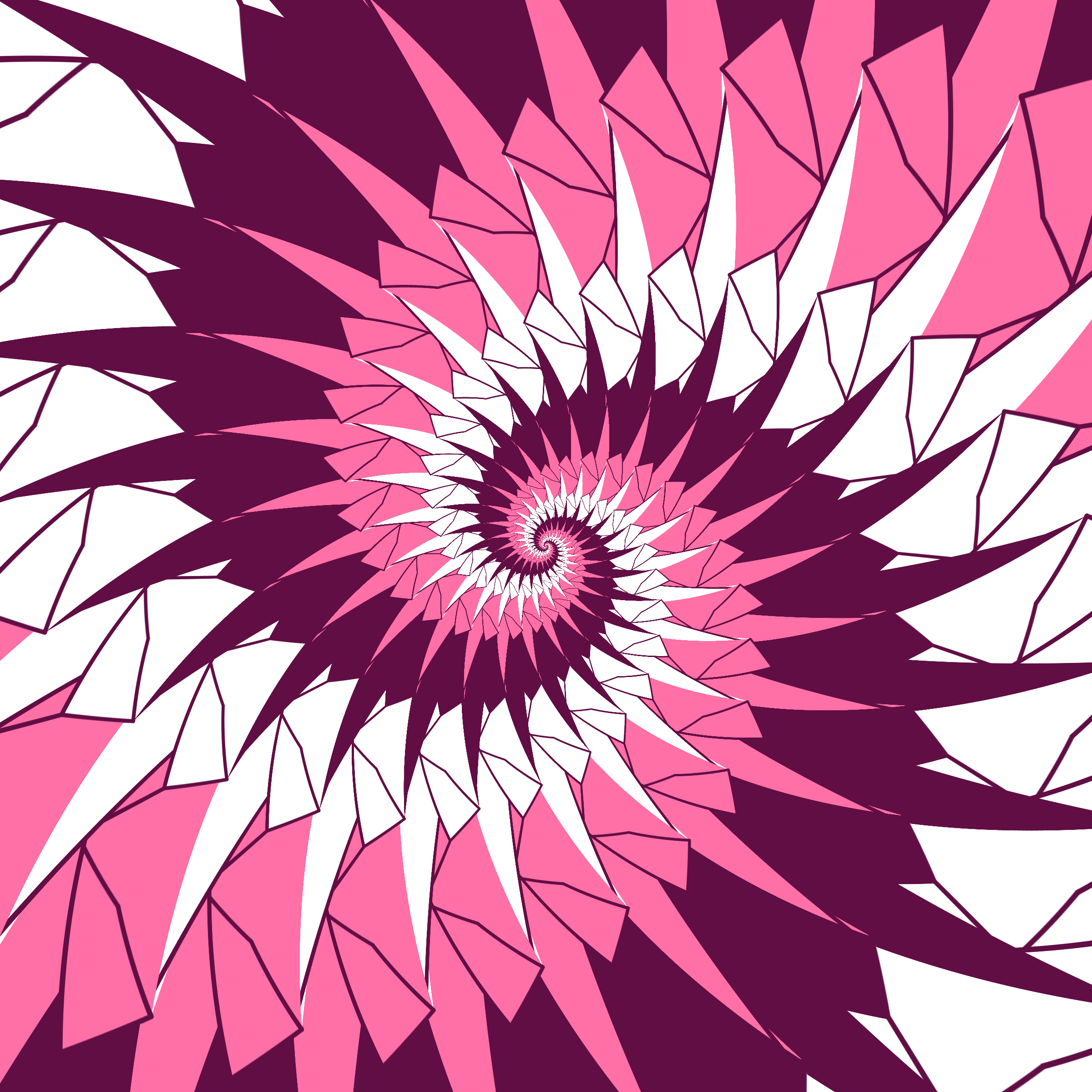 Escher-style tiling of a plane, gone wrong. Each image spins hash-driven colors, shapes, and symmetries into infinity. Fly through the spiral as it morphs between beauty and madness. Keys: F = Fly through/back, D = Distort on/off, Esc = Stop, S = Save image.