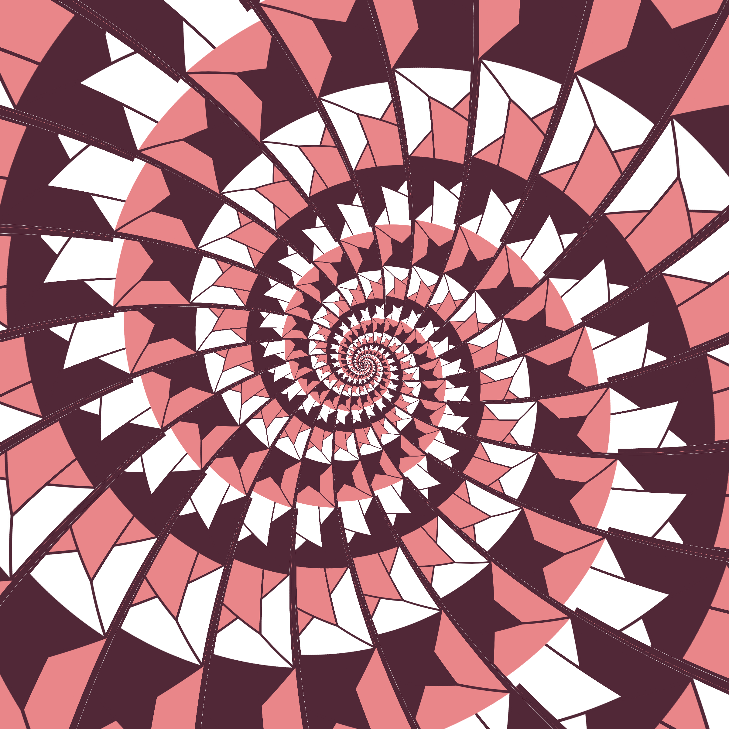 Escher-style tiling of a plane, gone wrong. Each image spins hash-driven colors, shapes, and symmetries into infinity. Fly through the spiral as it morphs between beauty and madness. Keys: F = Fly through/back, D = Distort on/off, Esc = Stop, S = Save image.