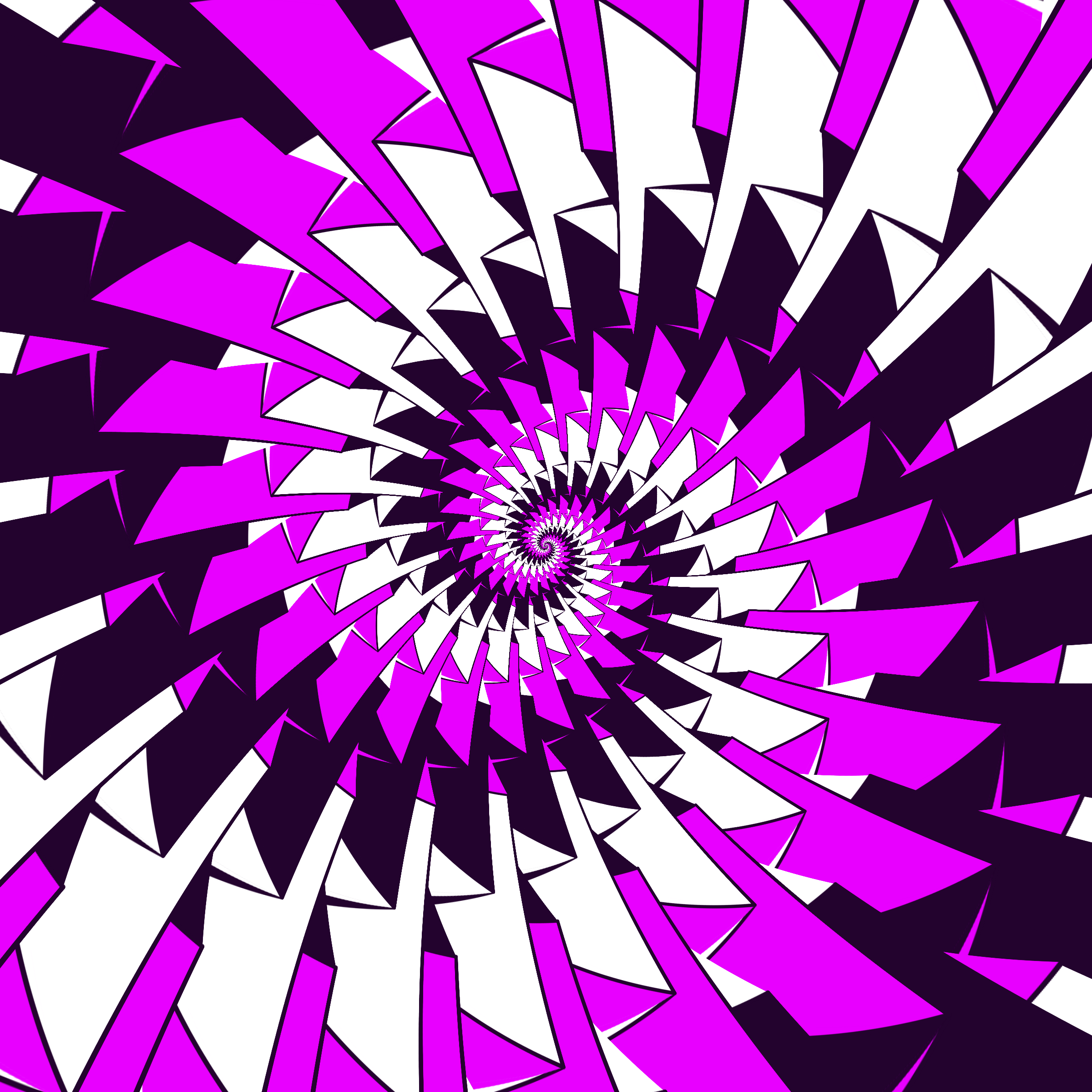 Escher-style tiling of a plane, gone wrong. Each image spins hash-driven colors, shapes, and symmetries into infinity. Fly through the spiral as it morphs between beauty and madness. Keys: F = Fly through/back, D = Distort on/off, Esc = Stop, S = Save image.