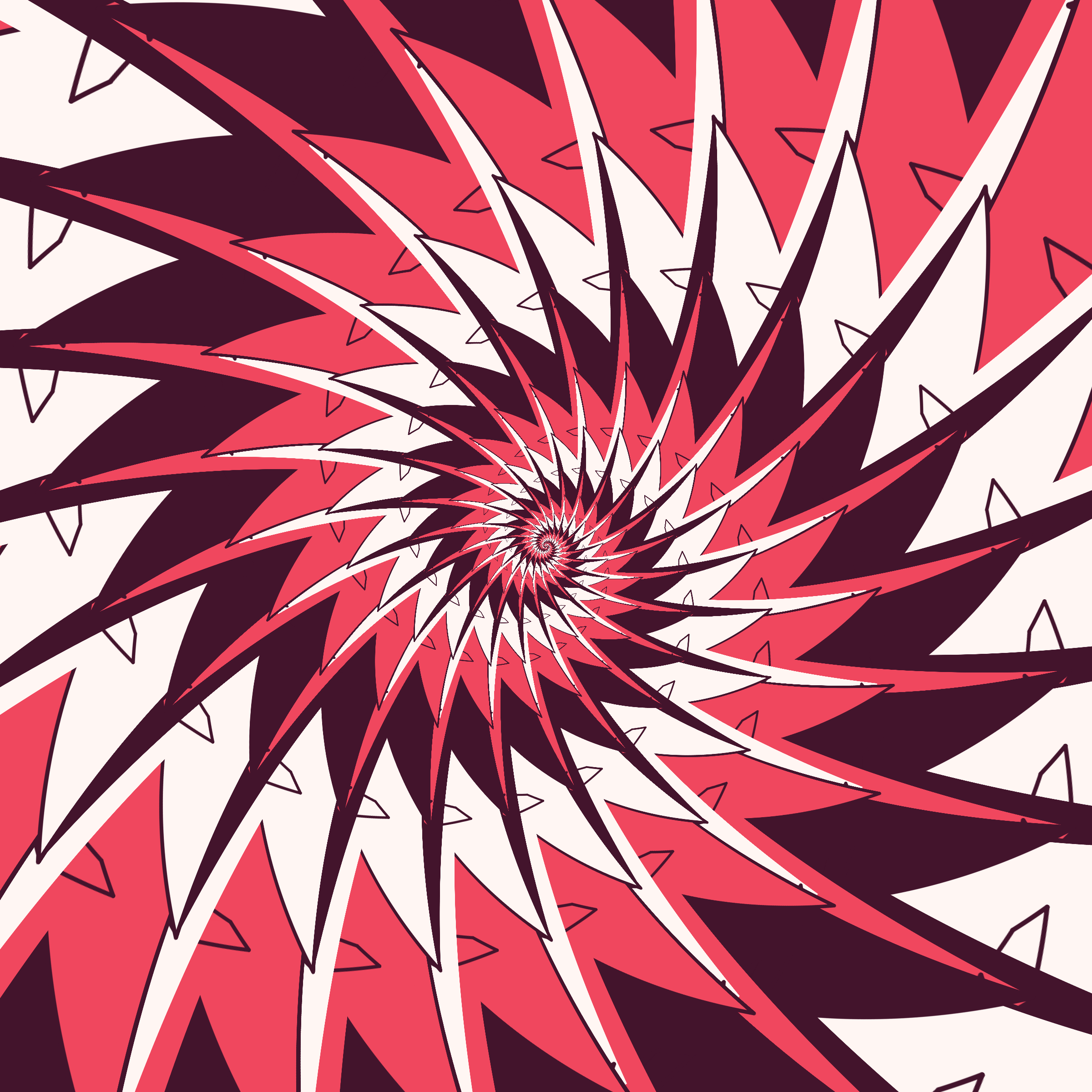Escher-style tiling of a plane, gone wrong. Each image spins hash-driven colors, shapes, and symmetries into infinity. Fly through the spiral as it morphs between beauty and madness. Keys: F = Fly through/back, D = Distort on/off, Esc = Stop, S = Save image.