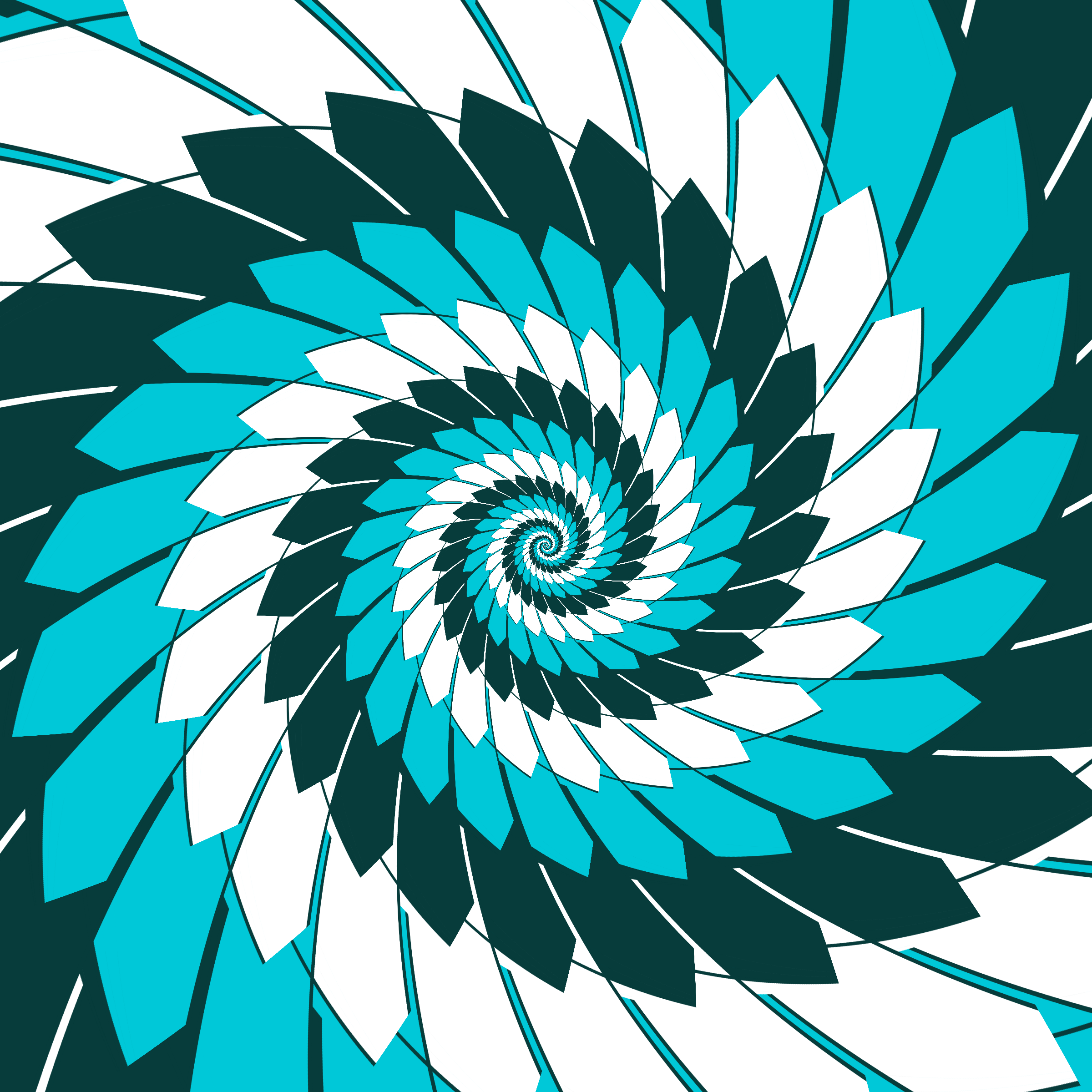 Escher-style tiling of a plane, gone wrong. Each image spins hash-driven colors, shapes, and symmetries into infinity. Fly through the spiral as it morphs between beauty and madness. Keys: F = Fly through/back, D = Distort on/off, Esc = Stop, S = Save image.